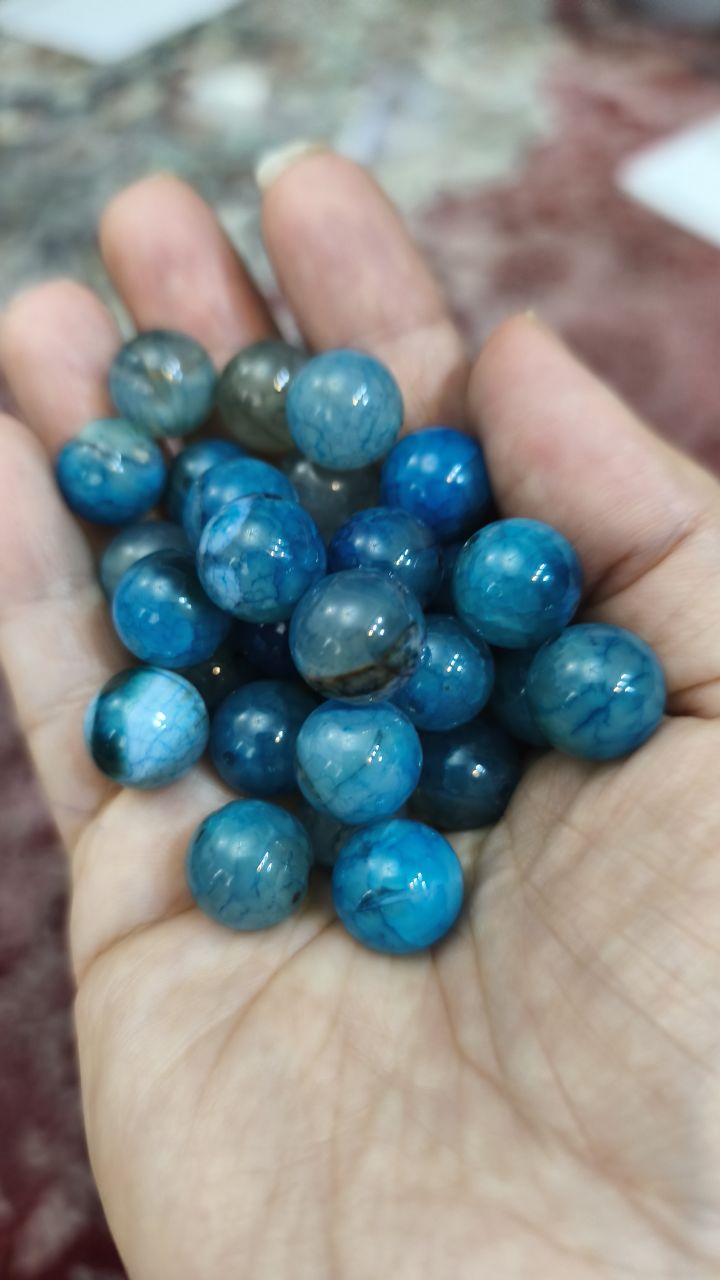 مهره سنگ عقیق دراگون آبی ۱۲میل اصل معدنی سوراخ دار