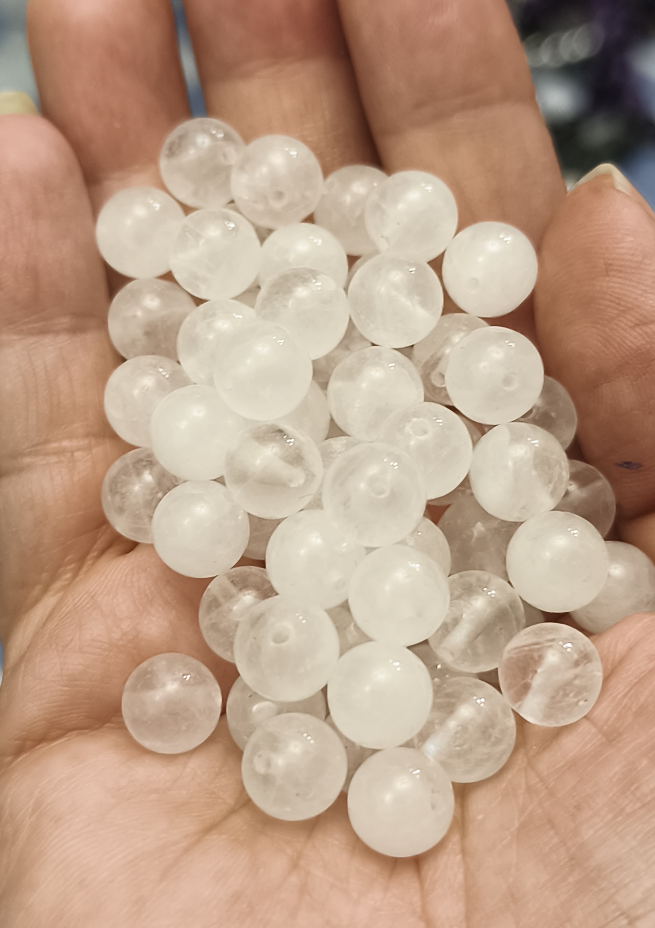 مهره سنگ رزکوارتز 4میل تراش جواهری اصل معدنی سوراخ دار