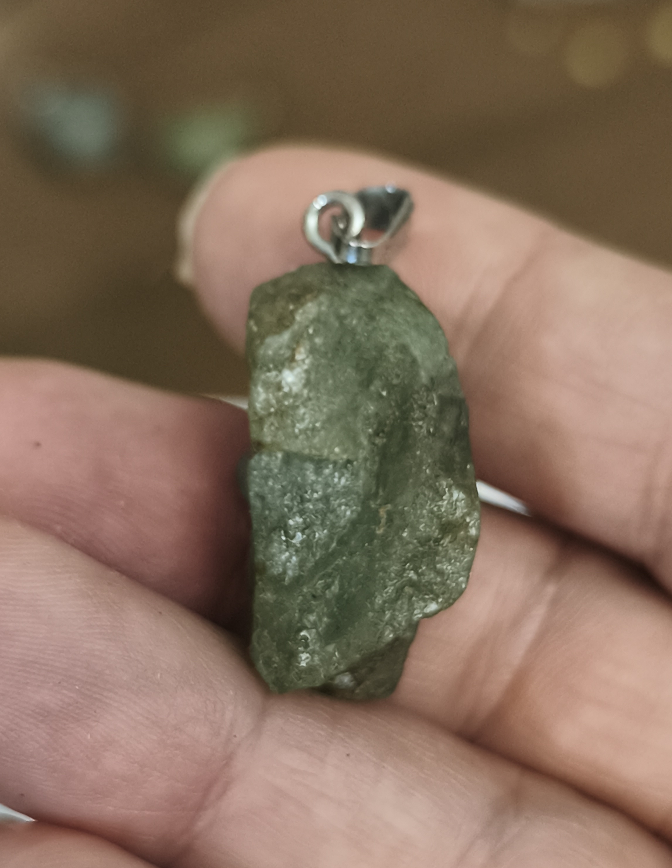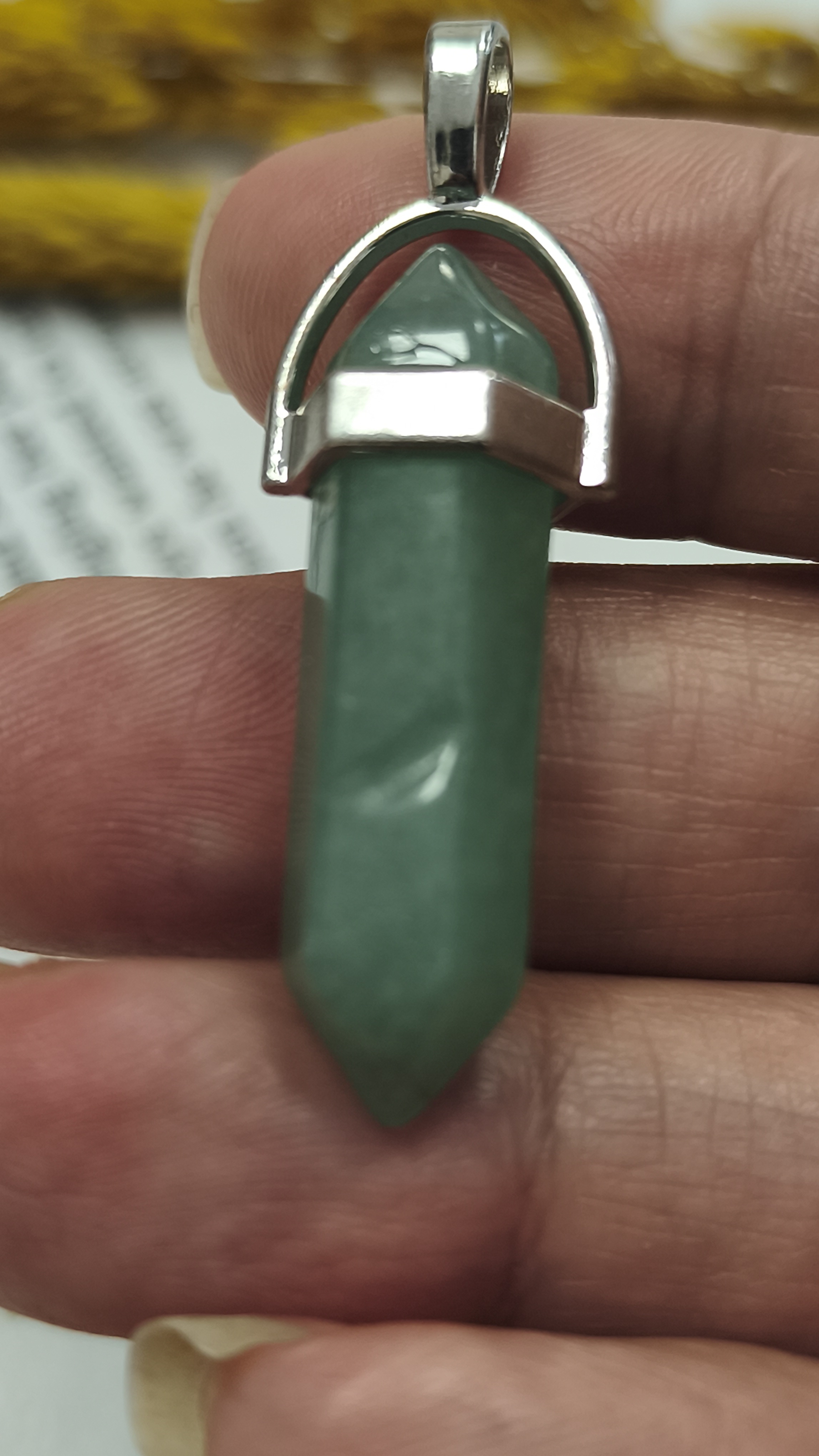 گردنبند سنگ آونتورین سبز منشوری با زنجیر استیل رنگ ثابت یا بند چرم آویز مدال