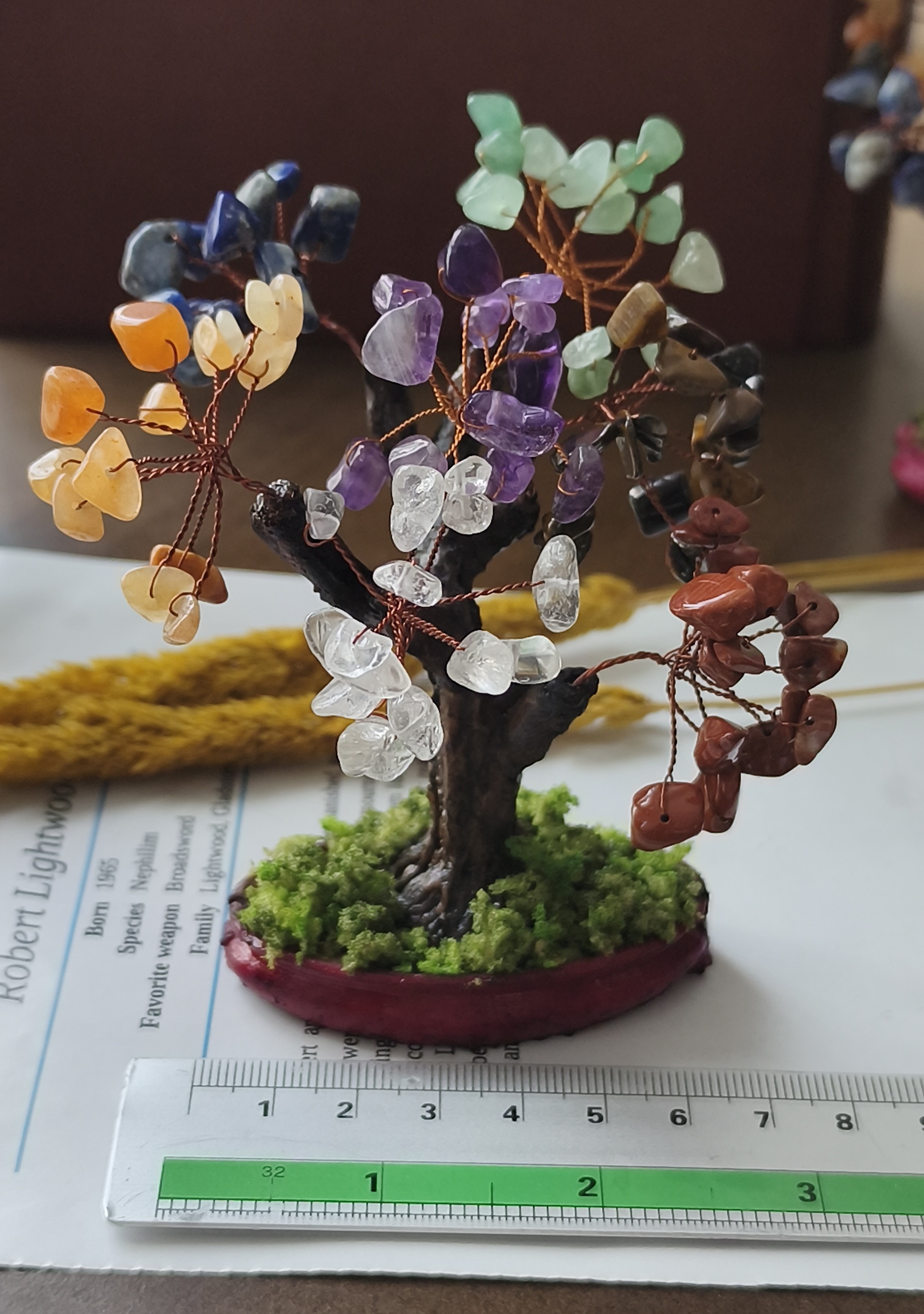 درختچه هفت چاکرا ۱۲سانت ساخته شده از سنگهای چیپسی اصل معدنی