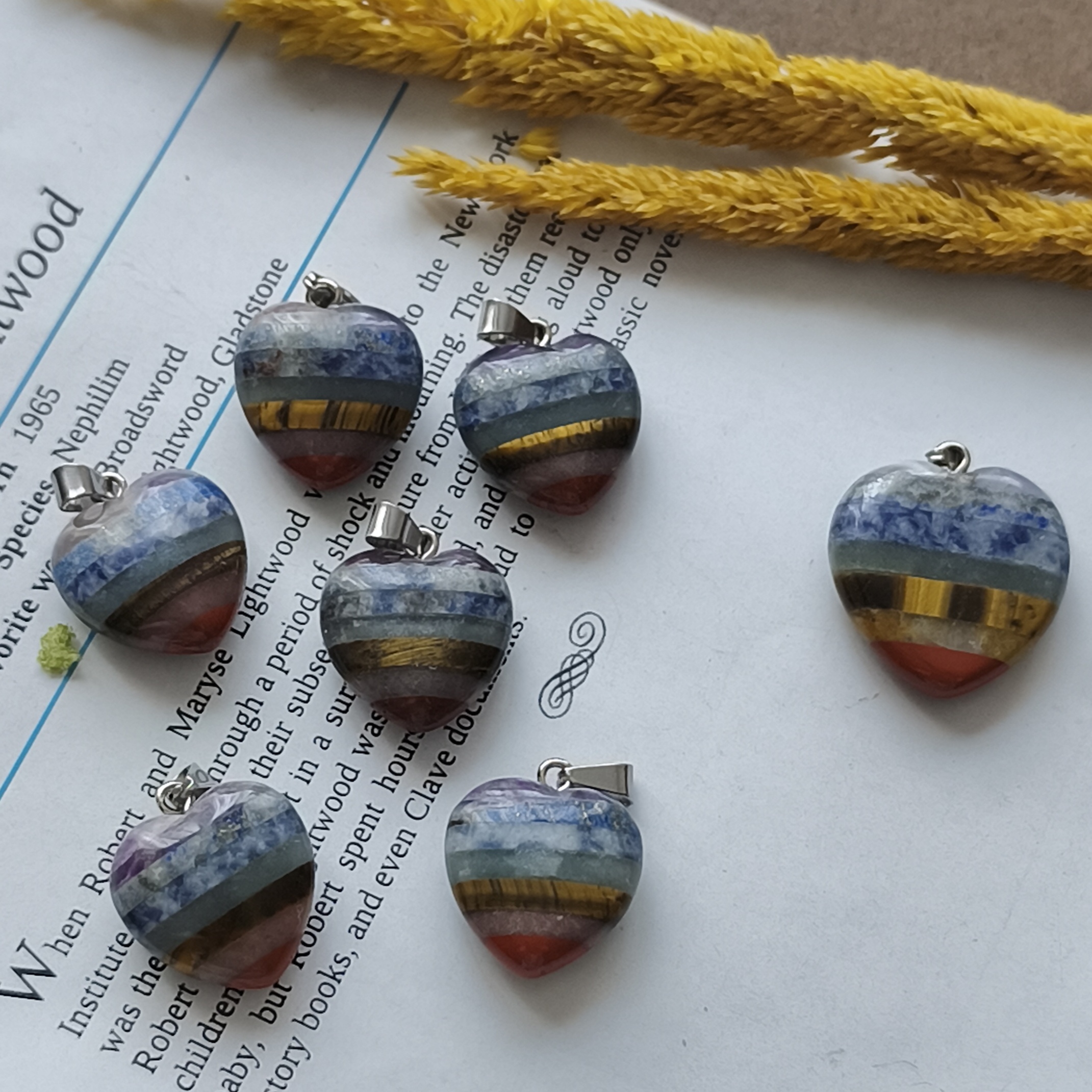 گردنبند هفت چاکرای قلبی ۲سانت و ۳ سانت با زنجیر استیل تمام سنگ