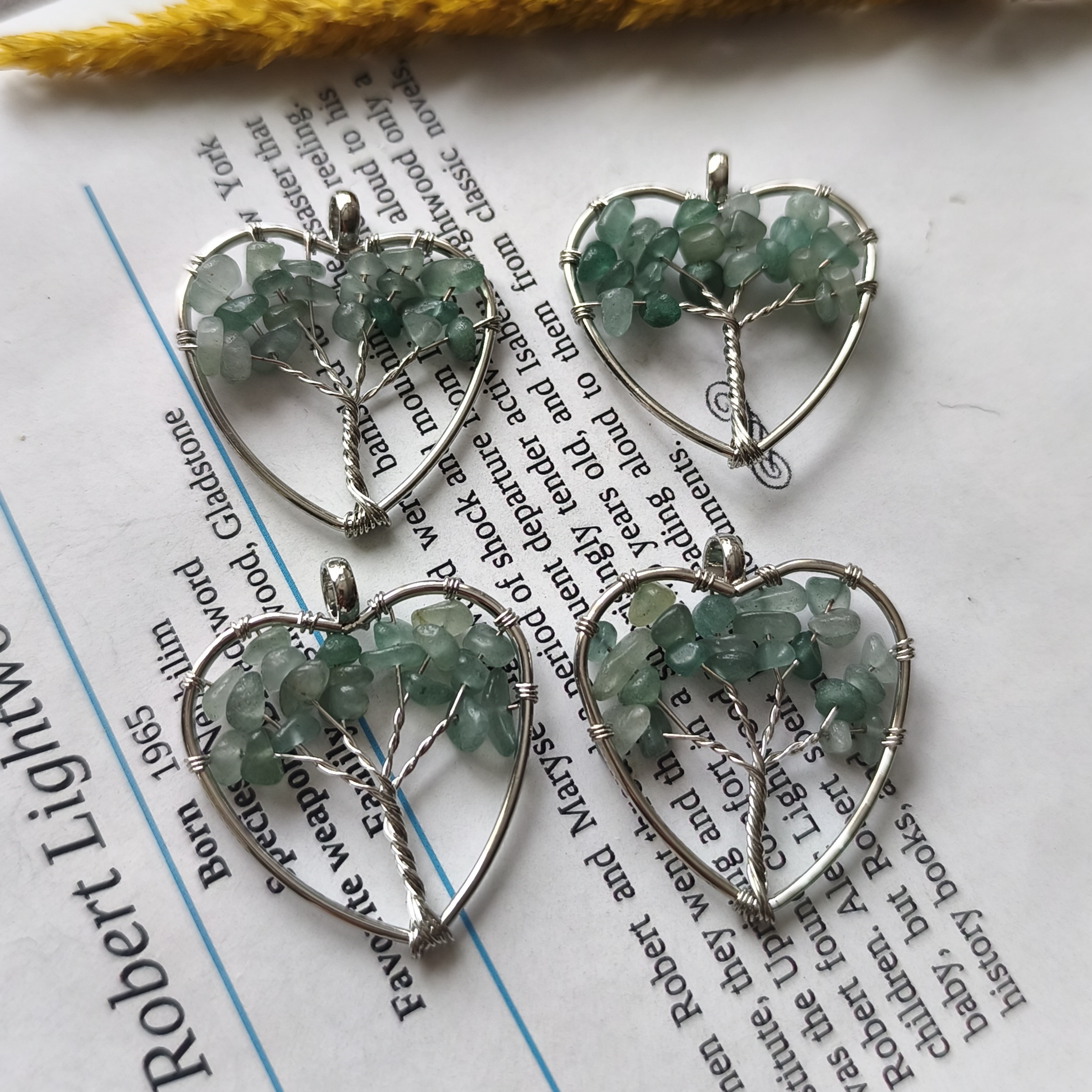 گردنبند درخت زندگی آونتورین سبز قلبی ۳سانت با زنجیر استیل آویز مدال
