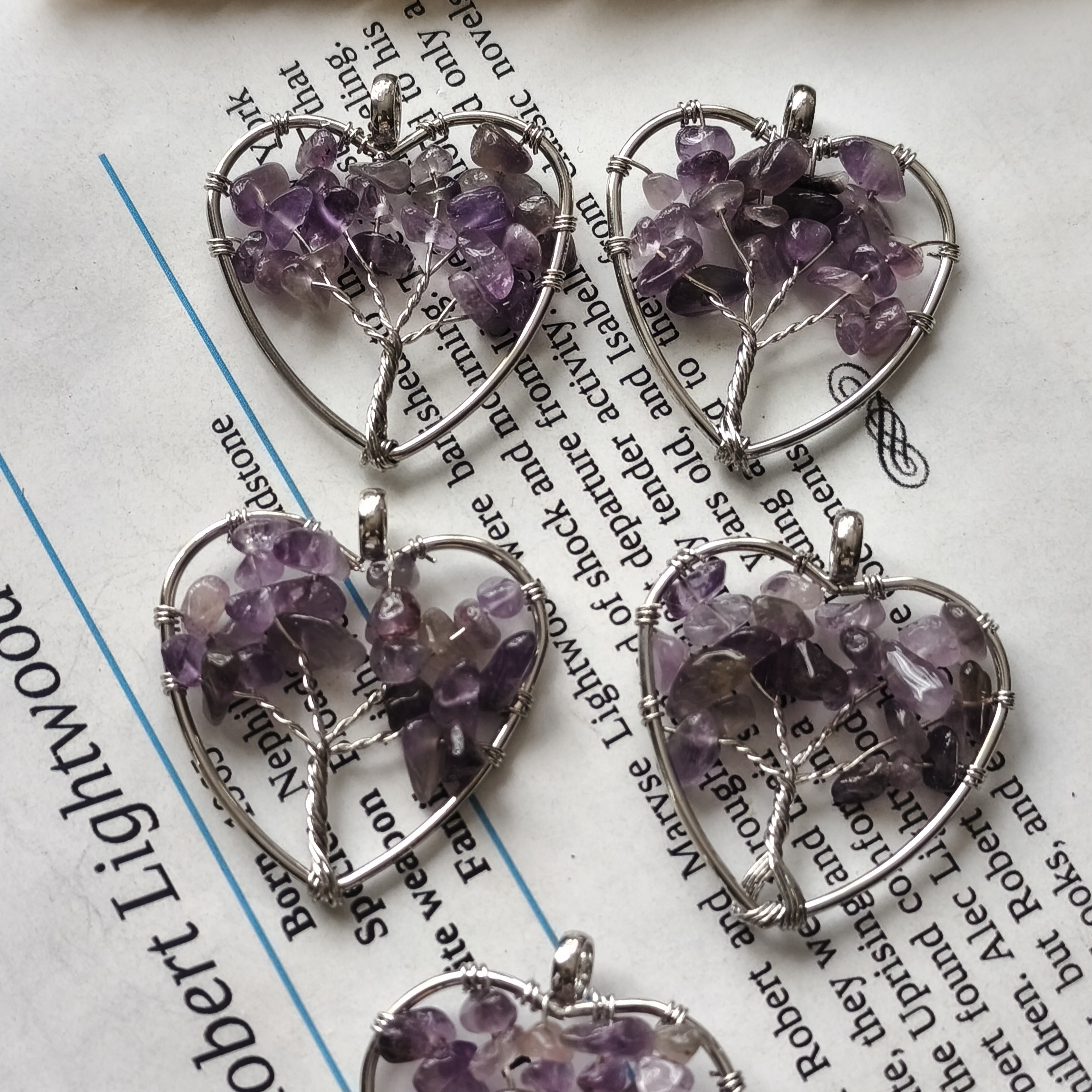 گردنبند درخت زندگی آمیتیست قلبی با زنجیر استیل اصل معدنی