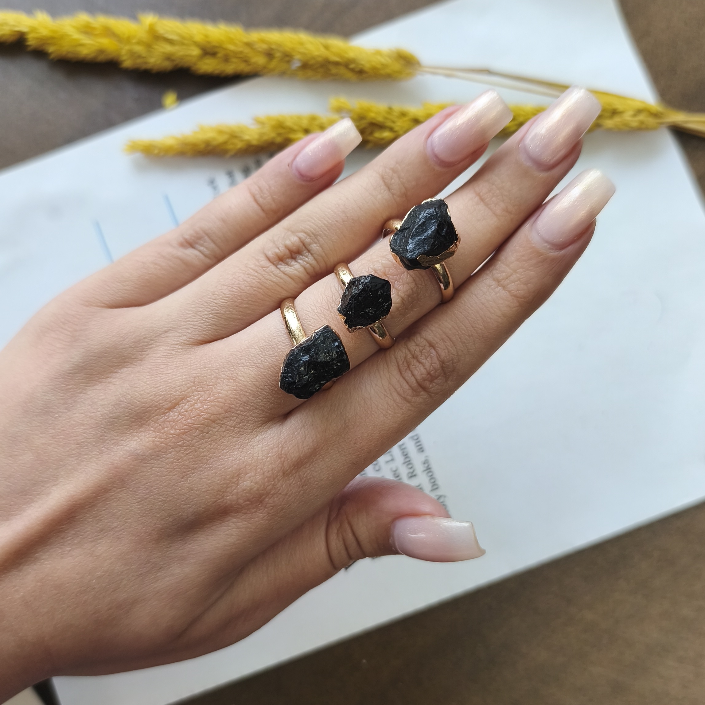 انگشتر تیتانیوم تورمالین سیاه تراش نخورده راف فری سایز اصل معدنی