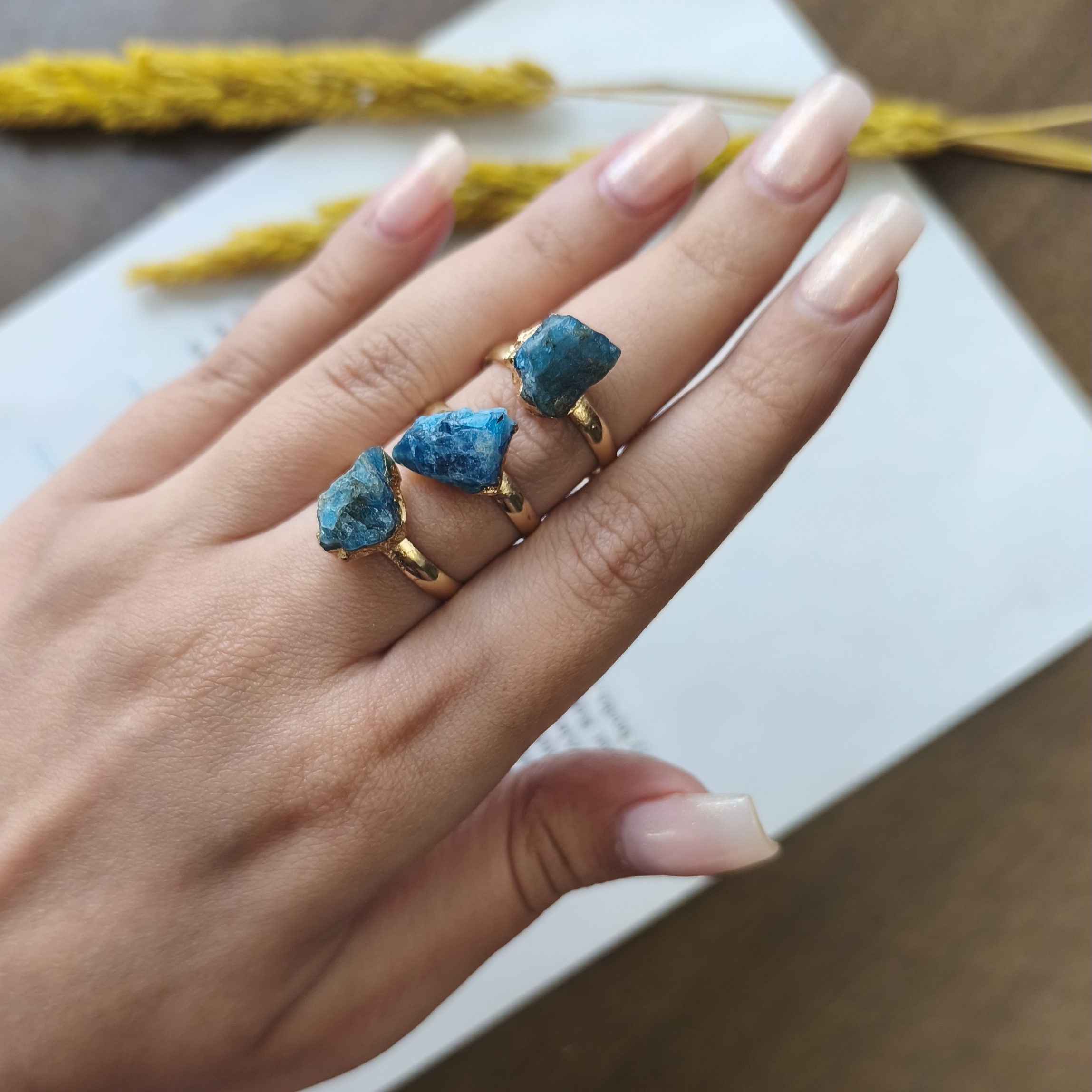 انگشتر تیتانیوم آپاتیت تراش نخورده راف اصل معدنی فری سایز