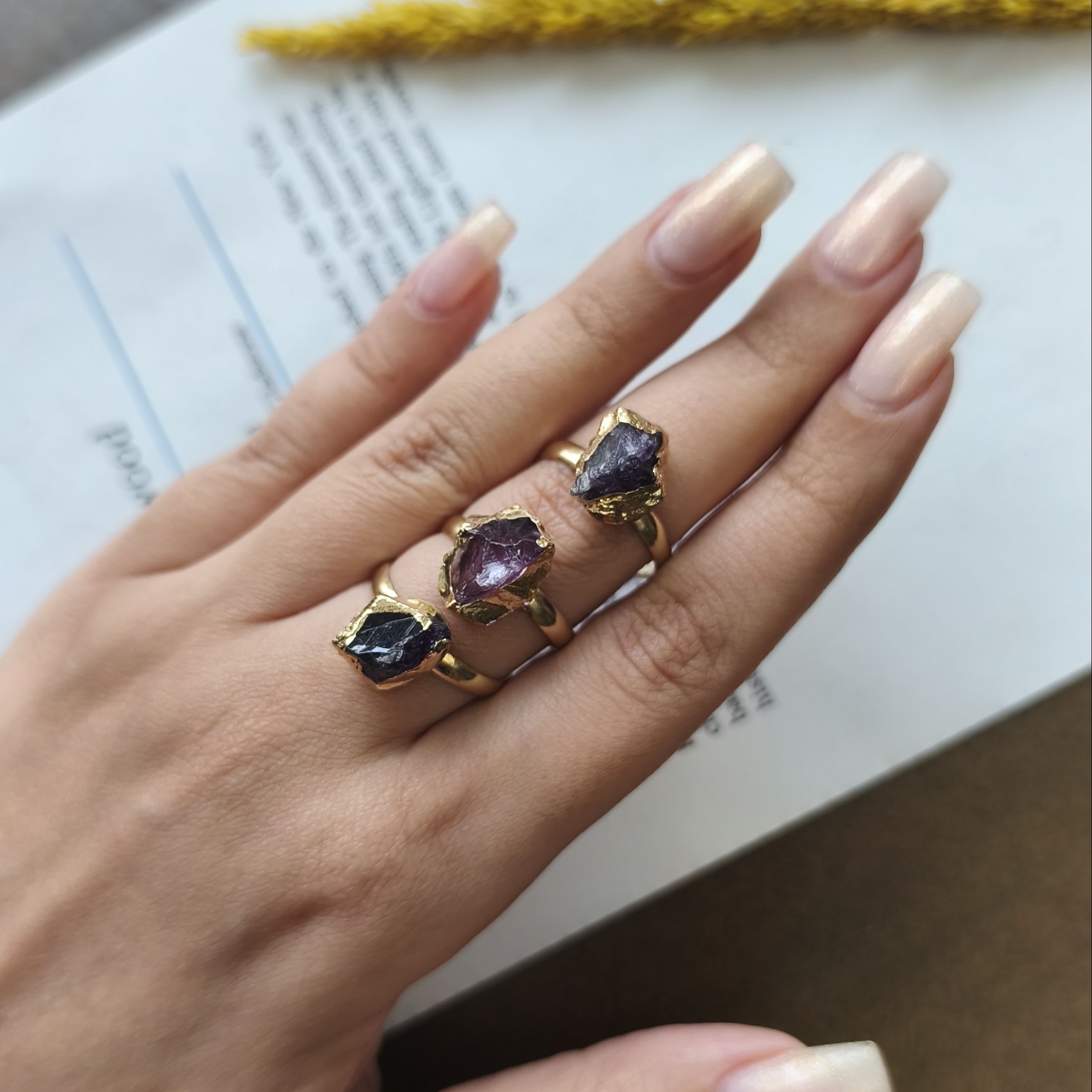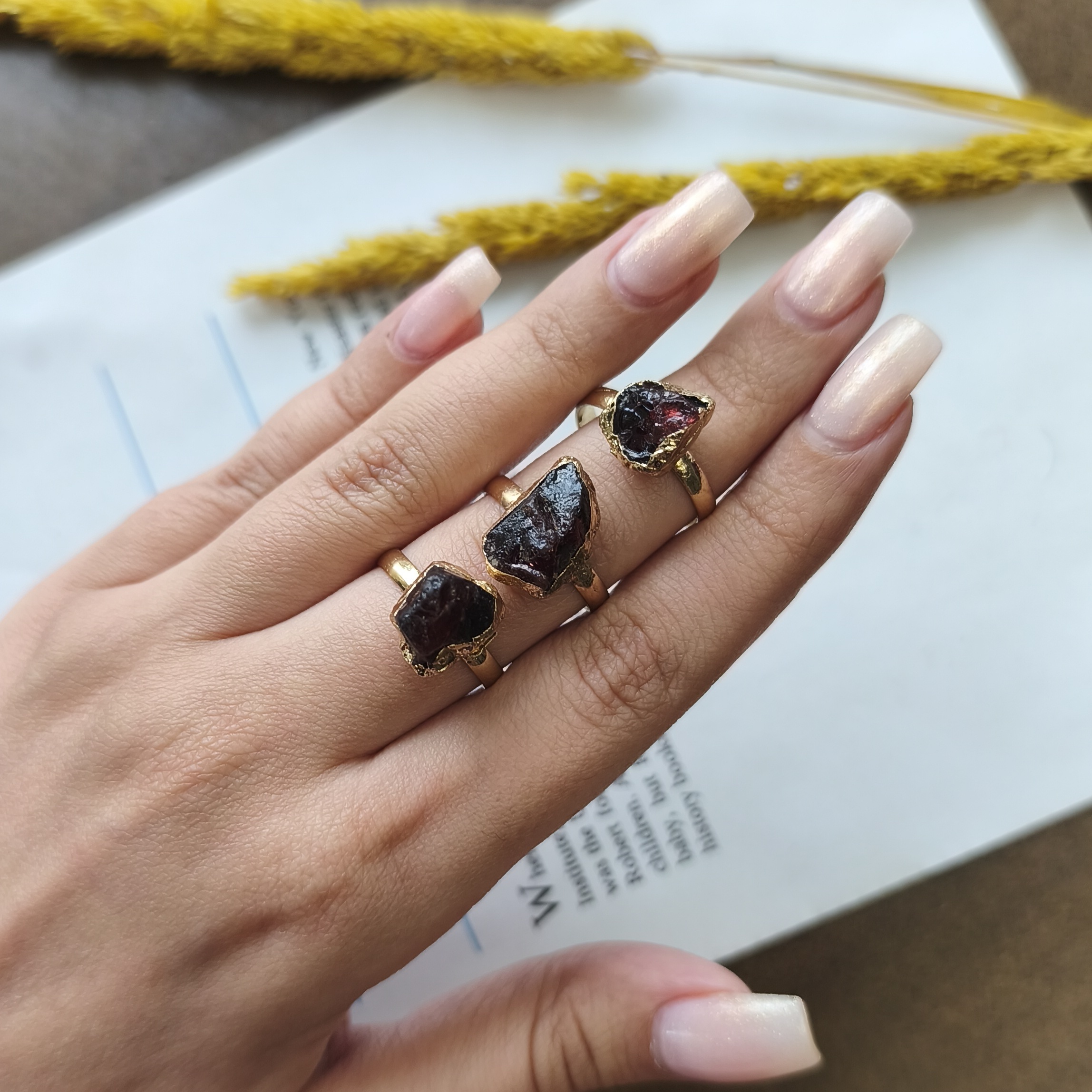 انگشتر تیتانیوم گارنت تراش نخورده راف اصل معدنی فری سایز