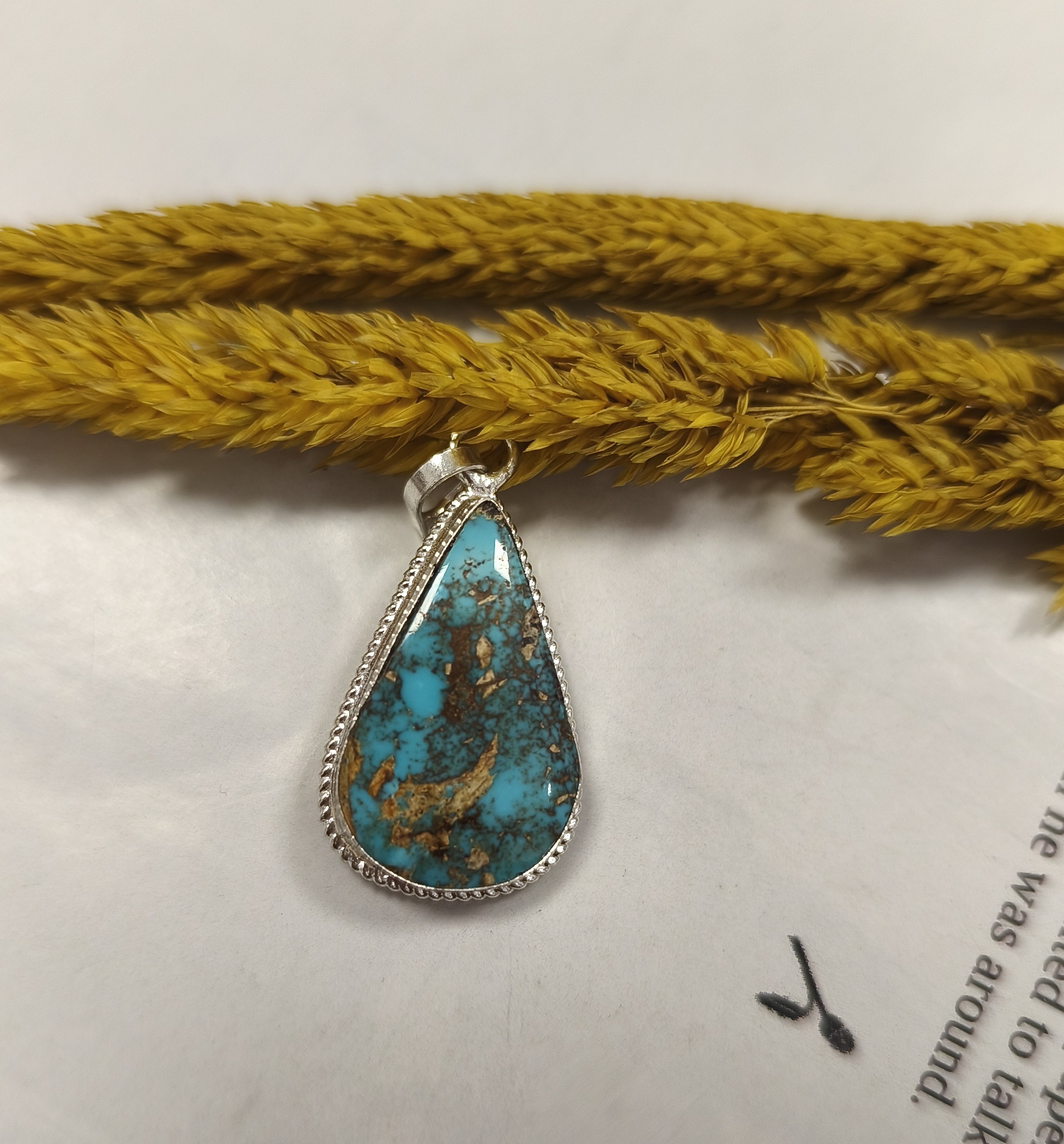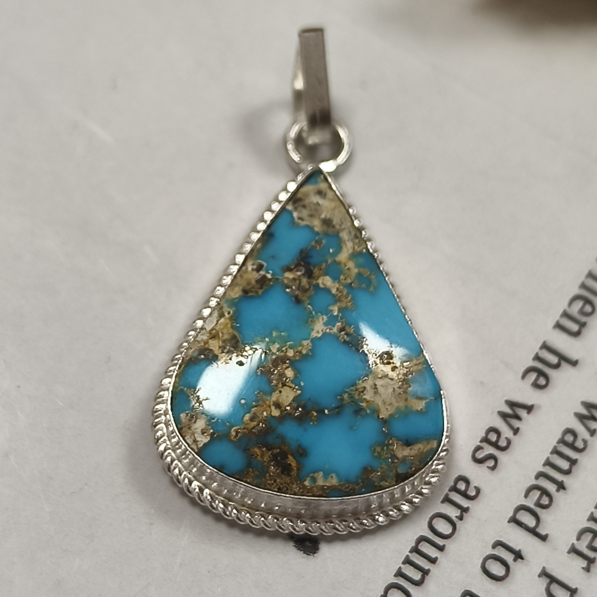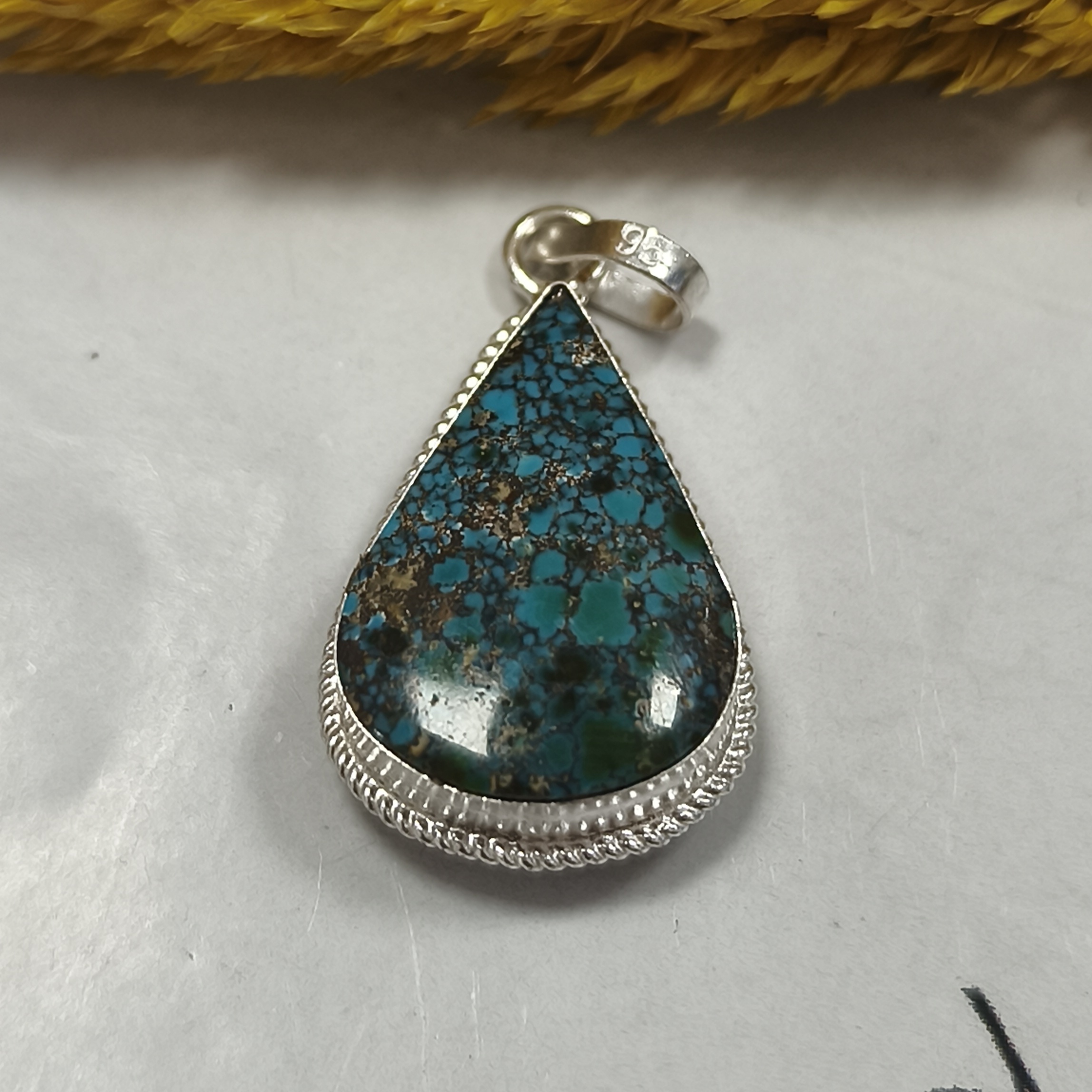 گردنبند نقره فیروزه نیشابور اشکی عیار ۹۲۵با زنجیر استیل