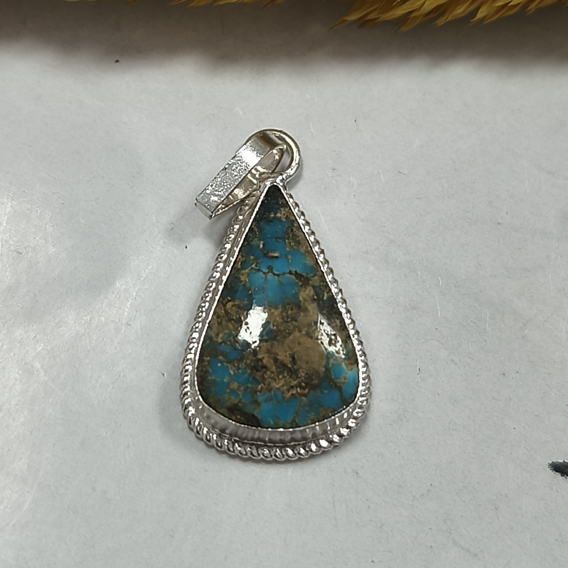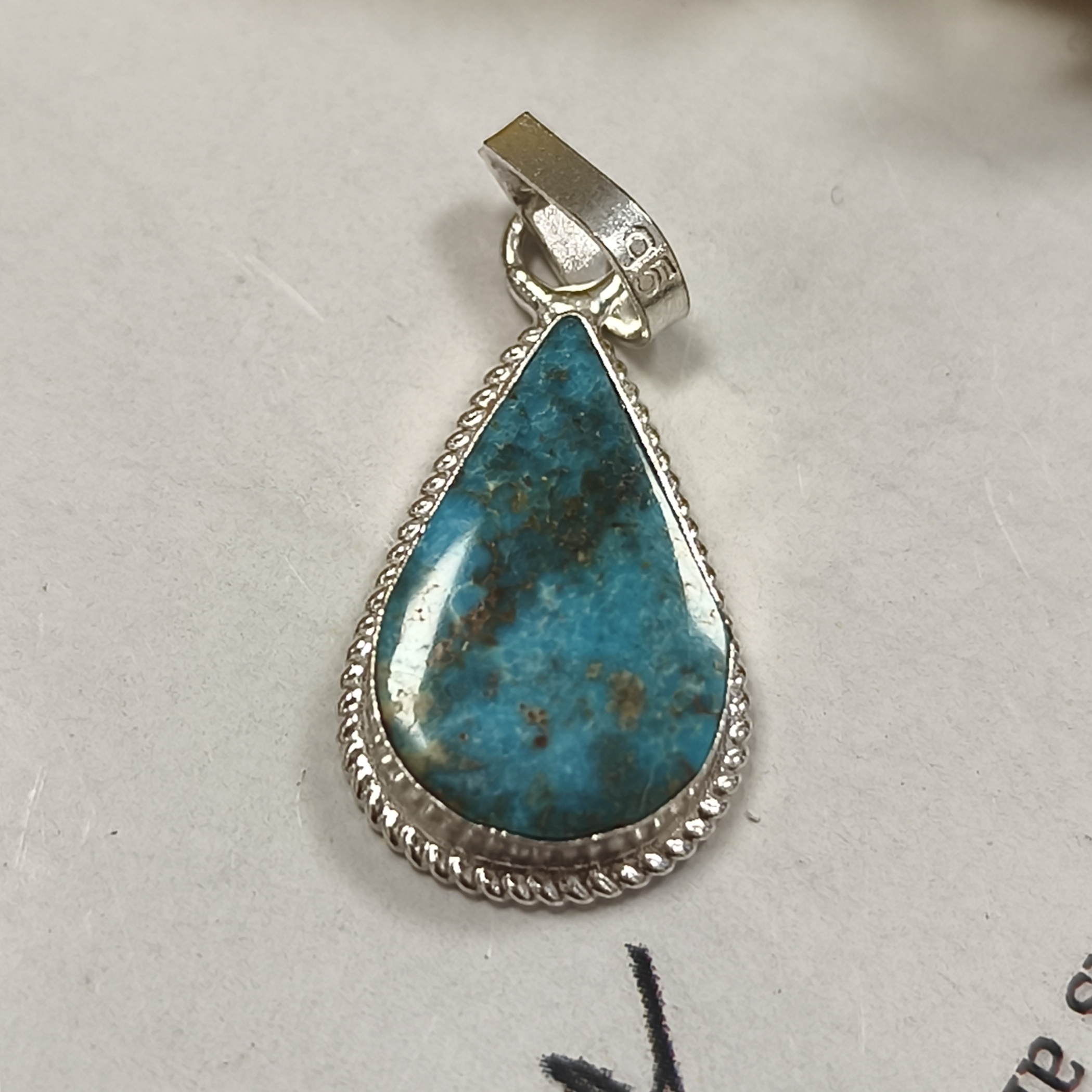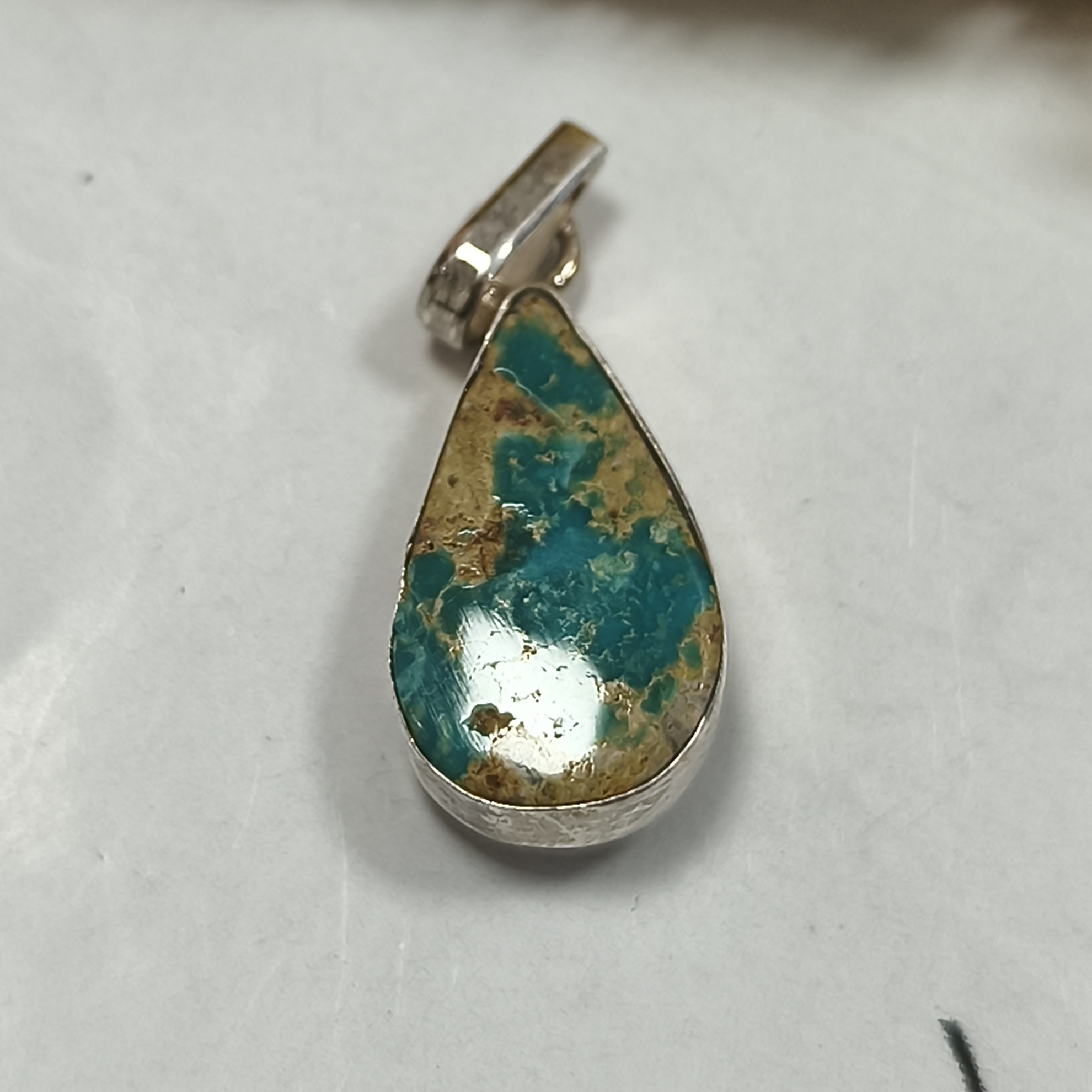 گردنبند نقره فیروزه نیشابور اشکی عیار ۹۲۵با زنجیر استیل