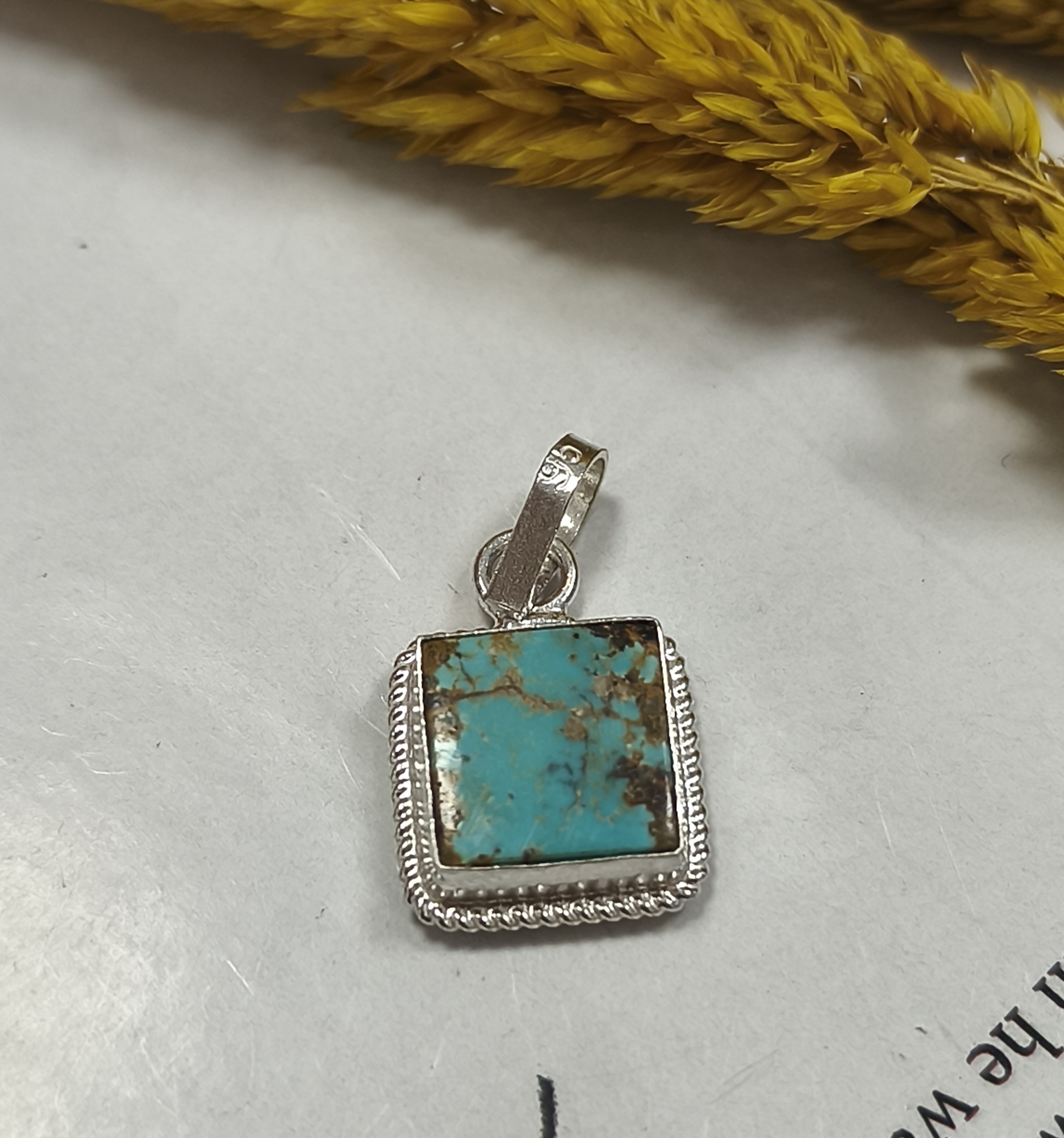 گردنبند نقره فیروزه نیشابور مربعی عیار ۹۲۵با زنجیر استیل