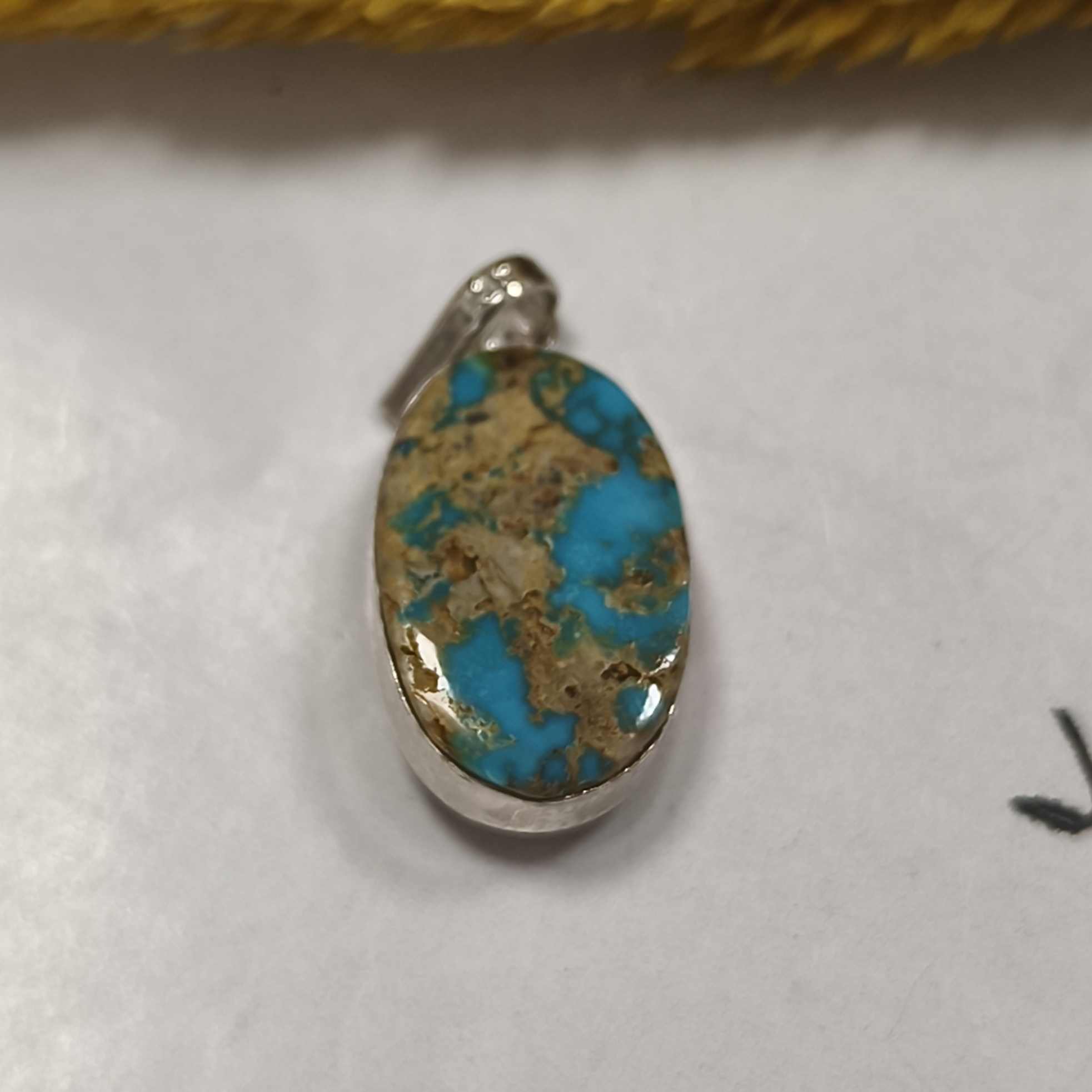 گردنبند نقره فیروزه نیشابور بیضی با زنجیر استیل