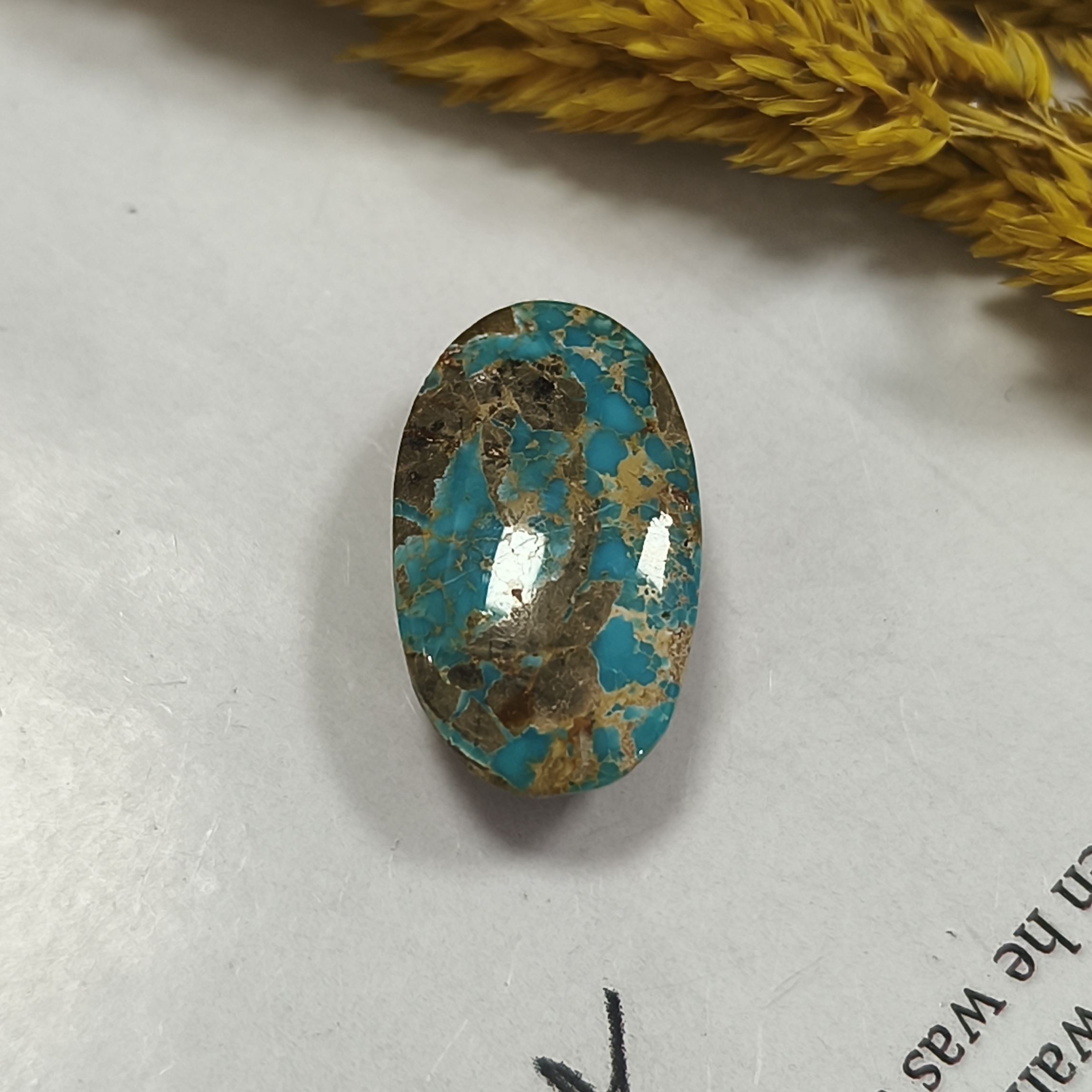 نگین فیروزه نیشابور با رگه های طلایی ۲۵در ۱۵میل اصل فوق العاده زیبا و کمیاب