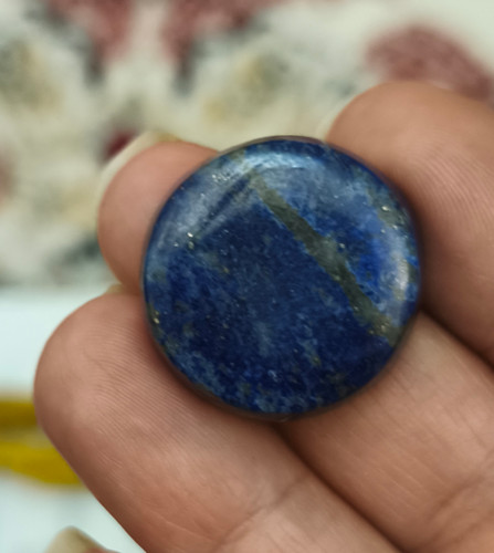 نگین لاجورد افغان دایره ای ۷.۵۰ گرم با رگه های پیریت طلایی اصل طبیعی معدنی