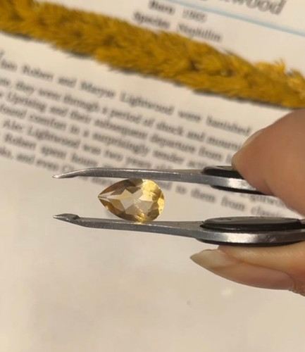 نگین سنگ سیترین برزیلی تراش جواهری 3قیراط اشکی سنگ اصل طبیعی