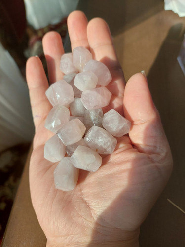 مهره سنگ رزکوارتز تراش ۴وجهی اصل معدنی سوراخ دار