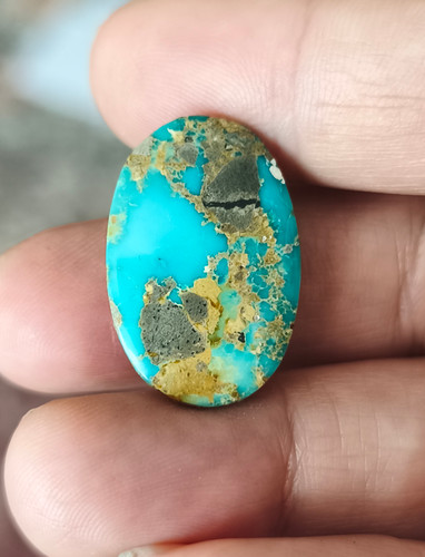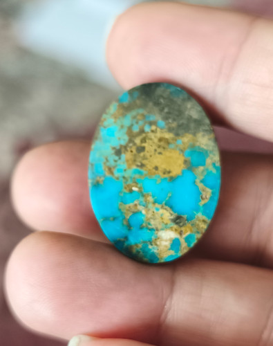 نگین فیروزه نیشابور اصل با رگه های طلایی ۲۳در 12میل فوق العاده زیبا و کمیاب