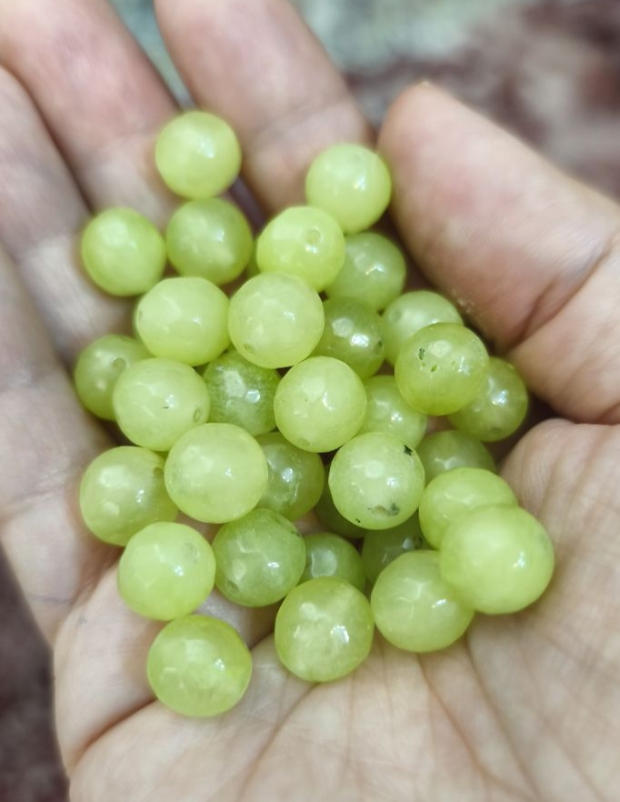 مهره سنگ عقیق سبز روشن تراش جواهری ۱۰میل اصل معدنی سوراخ دار