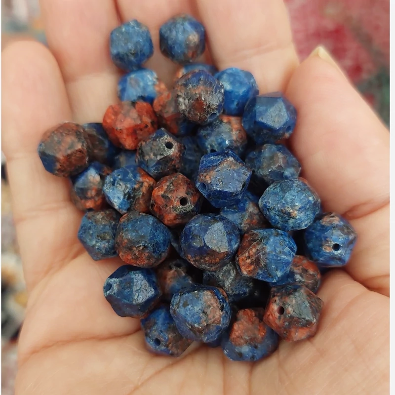مهره سنگ سرپانتین آبی و قرمز تراش استار سایز 10 سوراخ دار سنگ اصل طبیعی درجه یک گوی سرپنتین