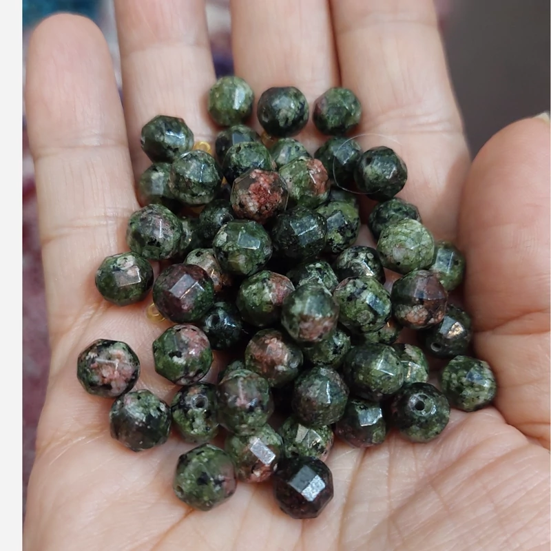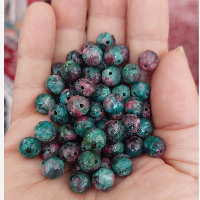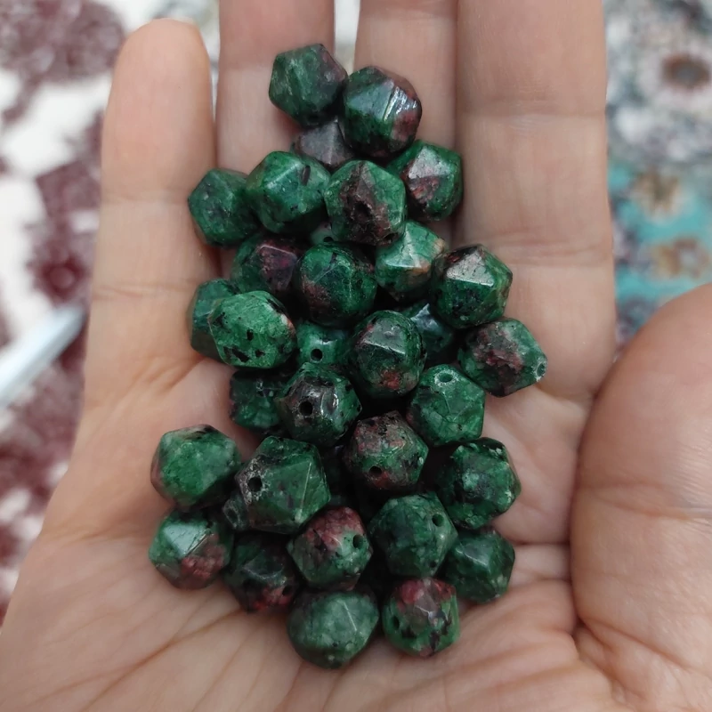 مهره سنگ سرپانتین سبز بنفش طرح روبی زئوسیت سایز ۸ تراش انرژی ۲۰۲۱سوراخ دار سنگ اصل طبیعی