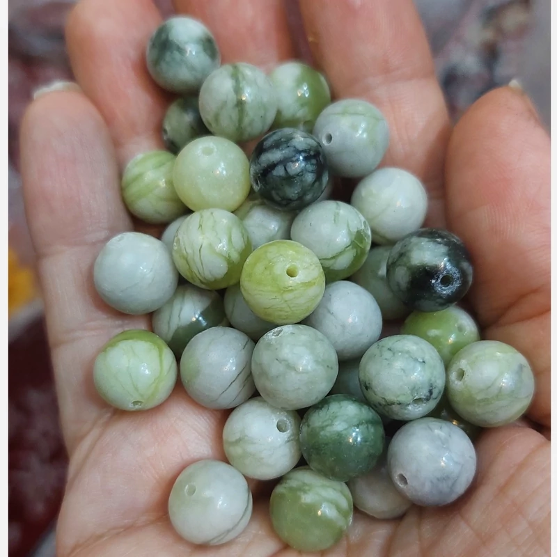 مهره سنگ یشم سرپانتین سایز 10 سنگ اصل طبیعی سوراخ دار
