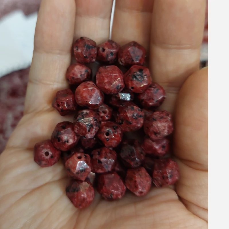 مهره سنگ سرپانتین قرمز دانه اناری تراش استار سایز 10 سنگ اصل طبیعی سرپنتین سوراخ دار