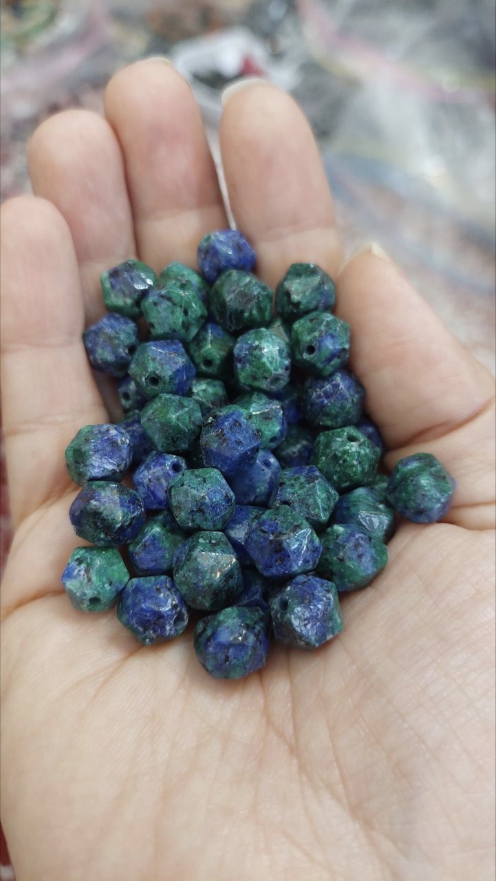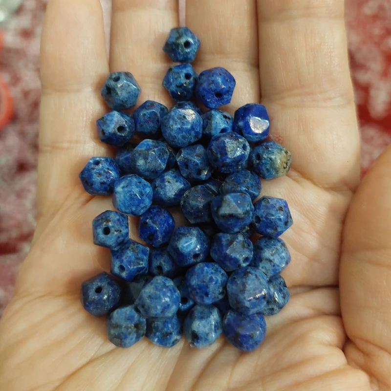 مهره سنگ سرپانتین سورمه ای تراش استار سایز 8 سوراخ دار آبی کبود سنگ اصل طبیعی