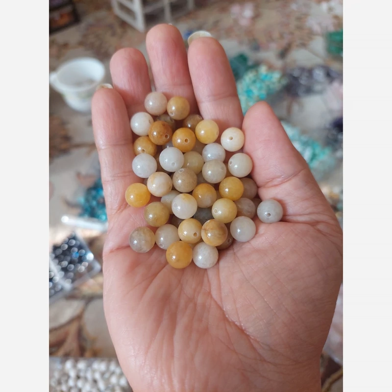 مهره سنگ کلسیت سوراخ دار سایز 8 درجه یک طبیعی