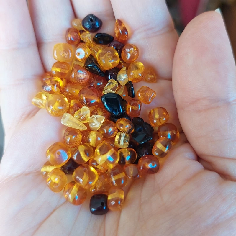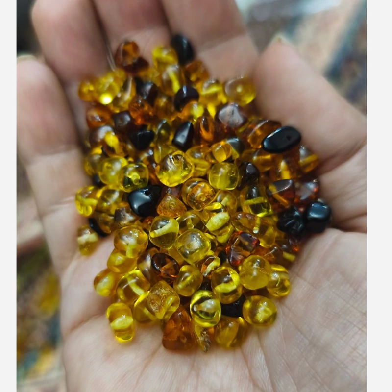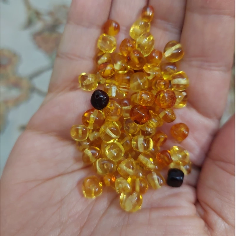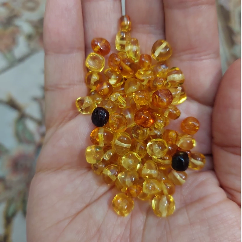 مهره سنگ کهربای نامنظم سوراخ دار سنگ اصل درجه یک طبیعی معدنی راف تراش نخورده دفرمه