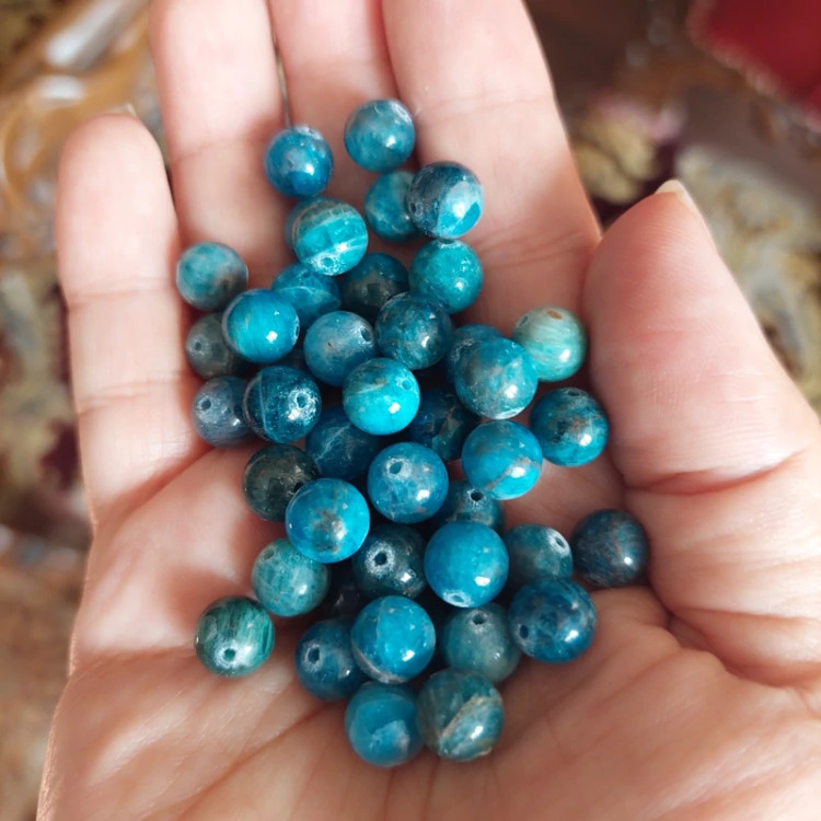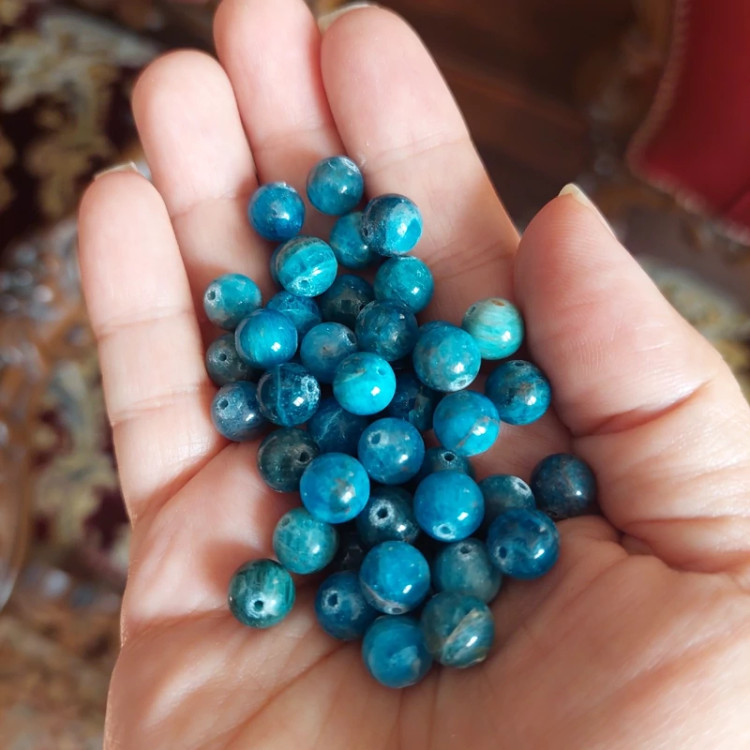 مهره سنگ آپاتیت سوراخ دار سایز۸سنگ اصل درجه یک طبیعی گوی هفت چاکرا مخصوص ساخت دستبند و گردنبند هرعدد ۱۴تومن