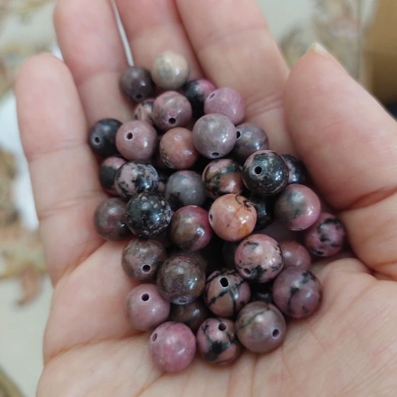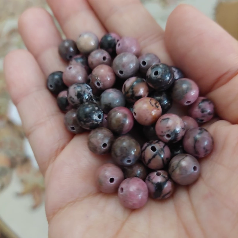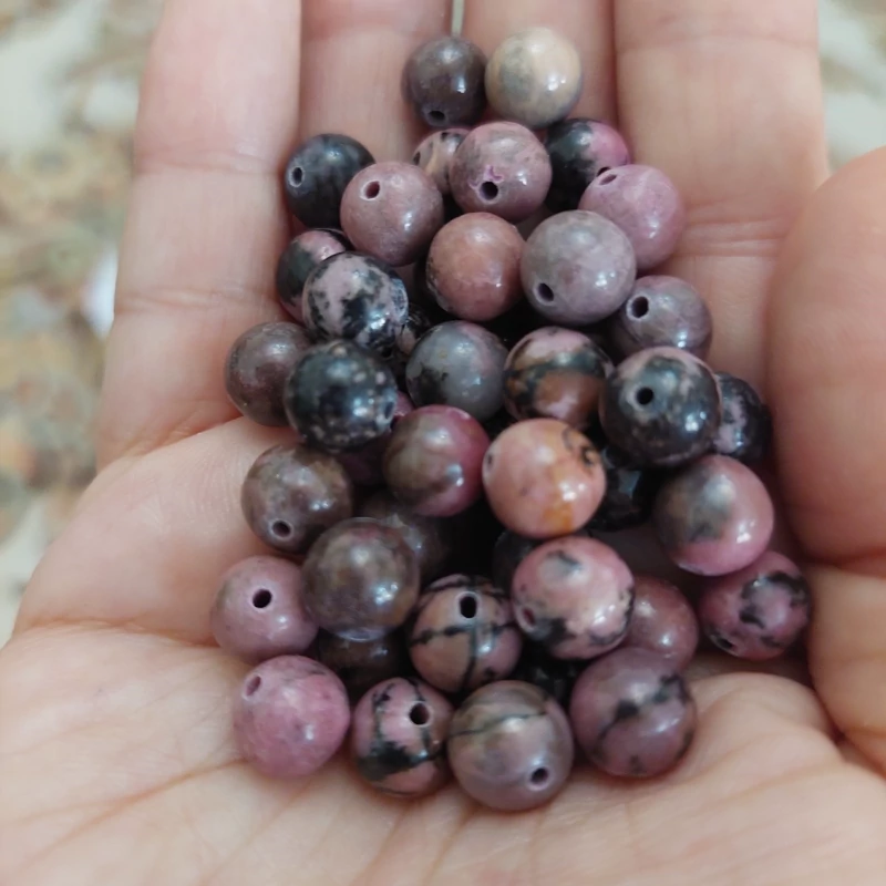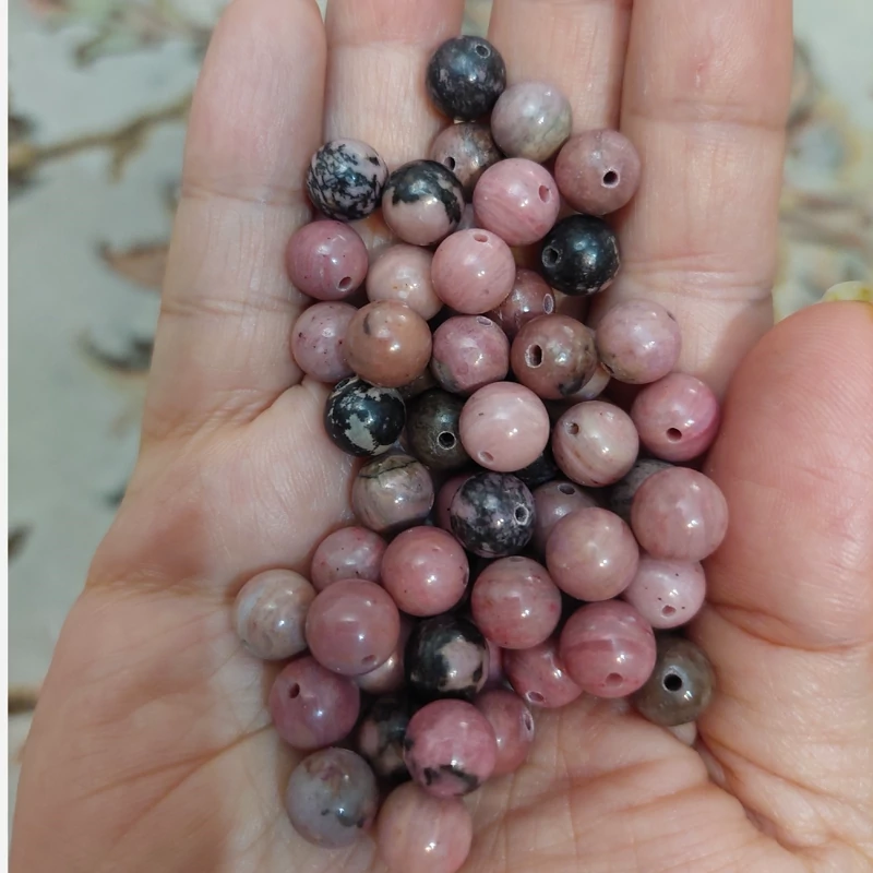 مهره سنگ رودونیت سایز 8 سوراخ دار سنگ طبیعی اصل گوی