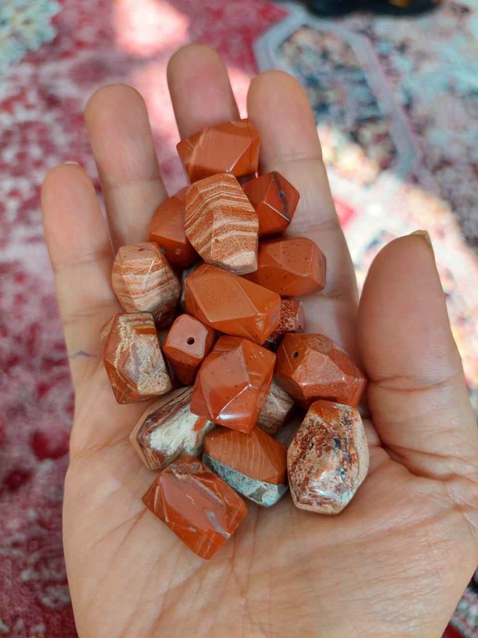 مهره سنگ جاسپر قرمز تراش چهاروجهی اصل معدنی سوراخ دار سایز درشت