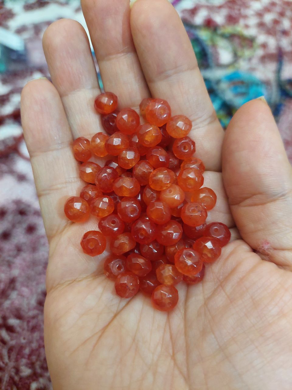 مهره سنگ جید قرمز واشری ۸میل اصل معدنی سوراخ دار