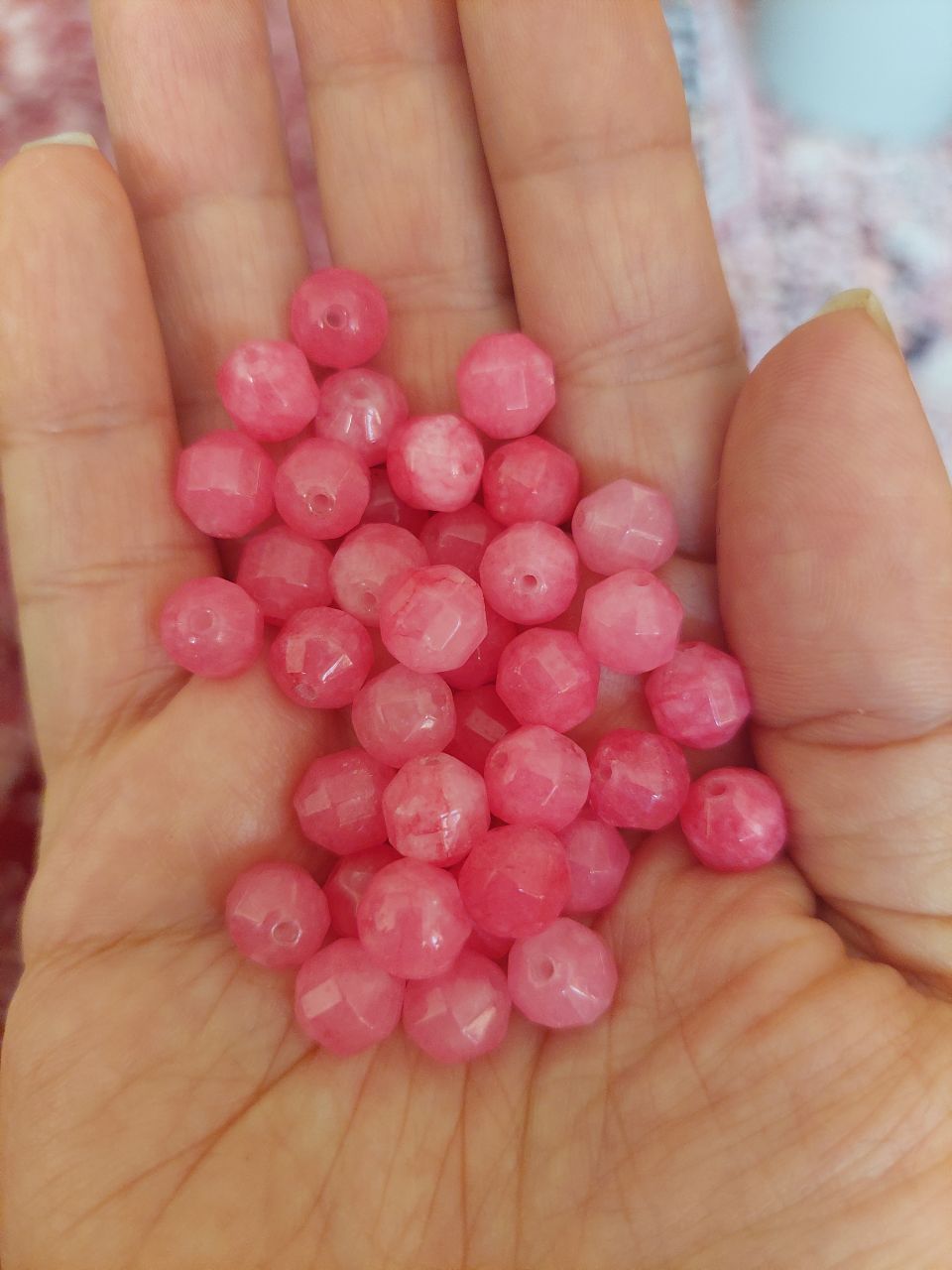 مهره سنگ جید صورتی ۸میل تراش ۲۰۲۱ انرژی اصل معدنی سوراخ دار