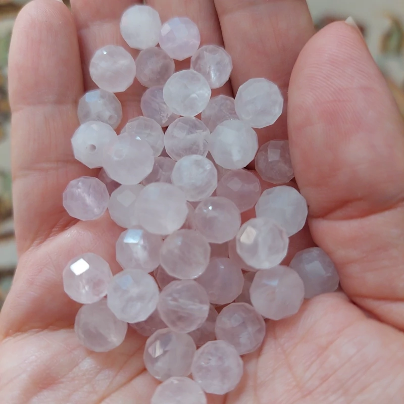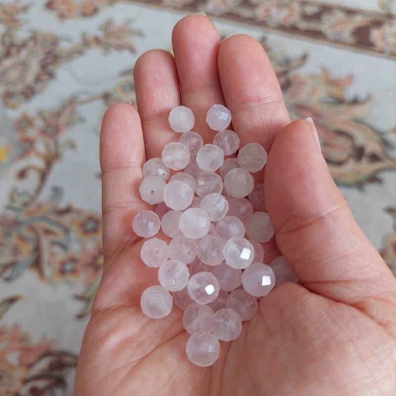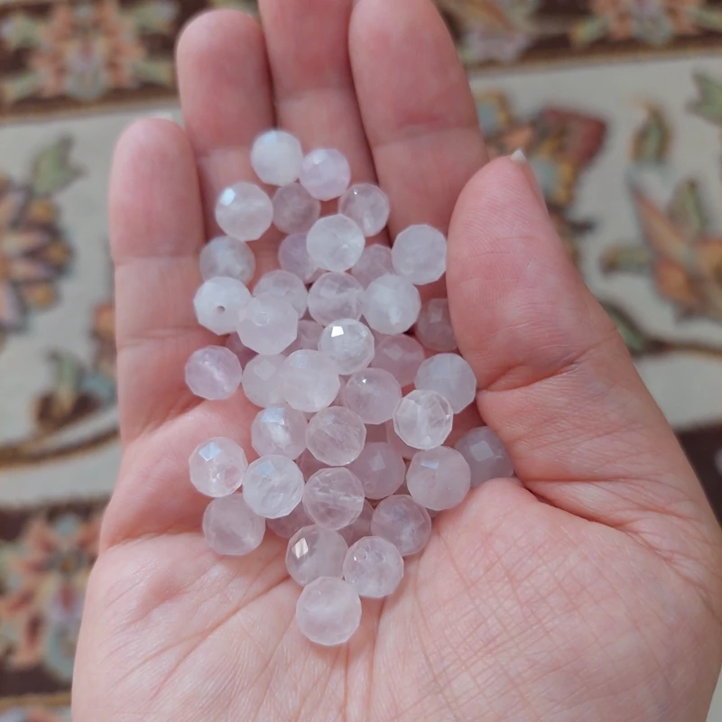 مهره سنگ رزکوارتز تراش جواهری سایز8 سنگ اصل درجه یک مهره سوراخ دار طبیعی معدنی