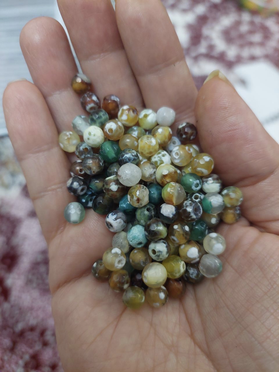 مهره سنگ عقیق سبز لکه دار سایز ۶تراش جواهری سوراخ دار اصل معدنی