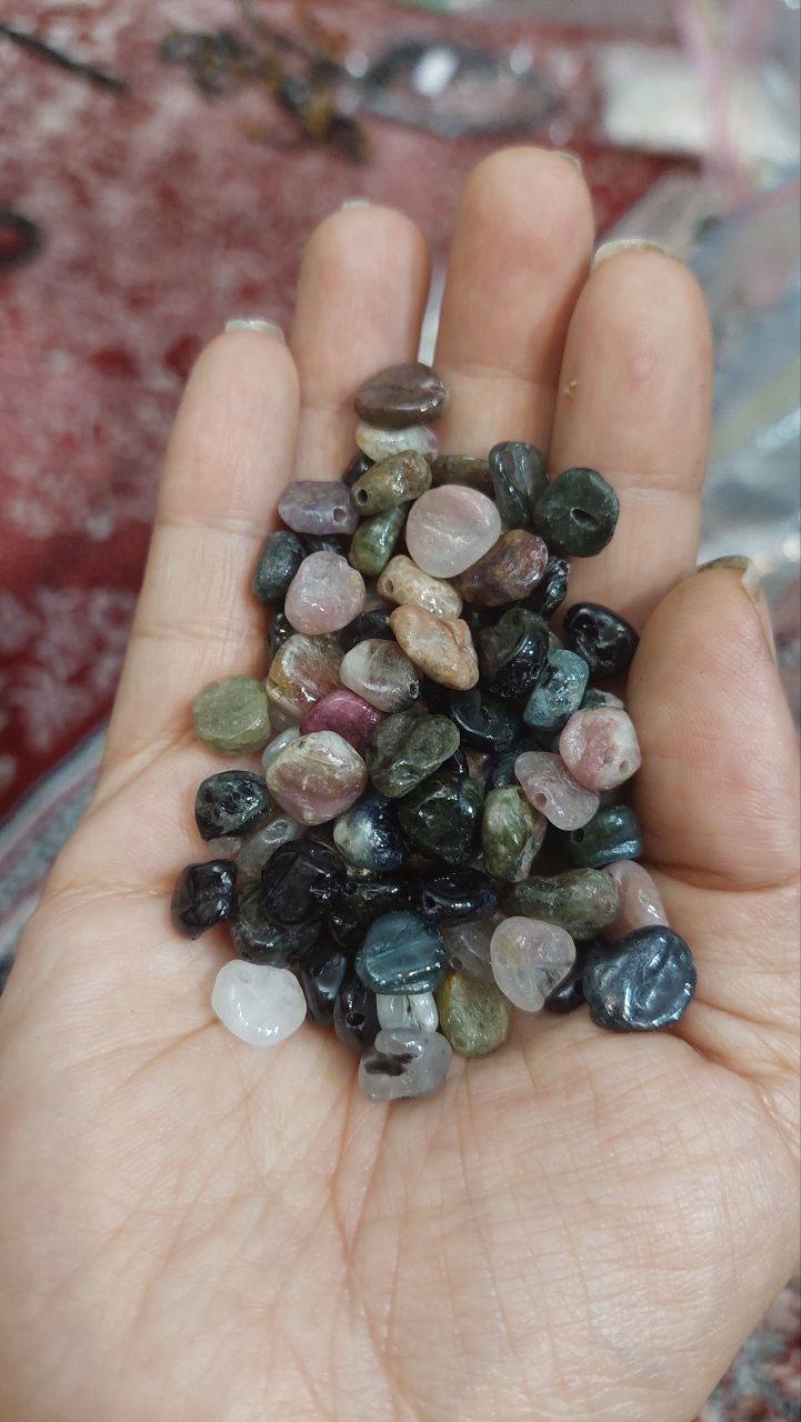 مهره سنگ تورمالین هندوانه ای تامبل سوراخ دار اصل معدنی