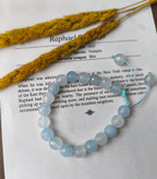 دستبند سنگ جید آبی طرح آکوامارین تراش جواهری اصل معدنی با گره کشویی
