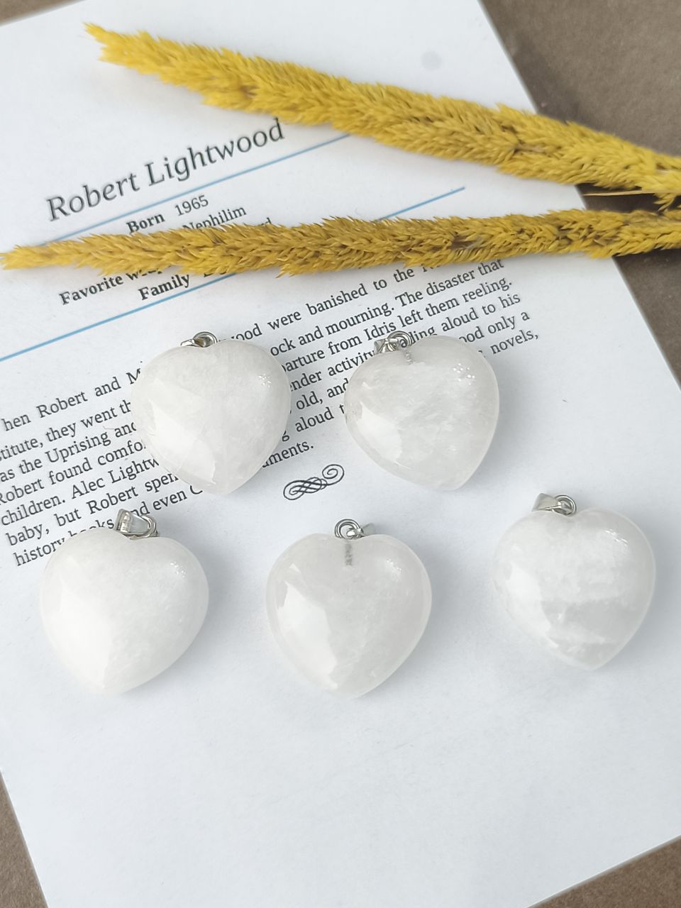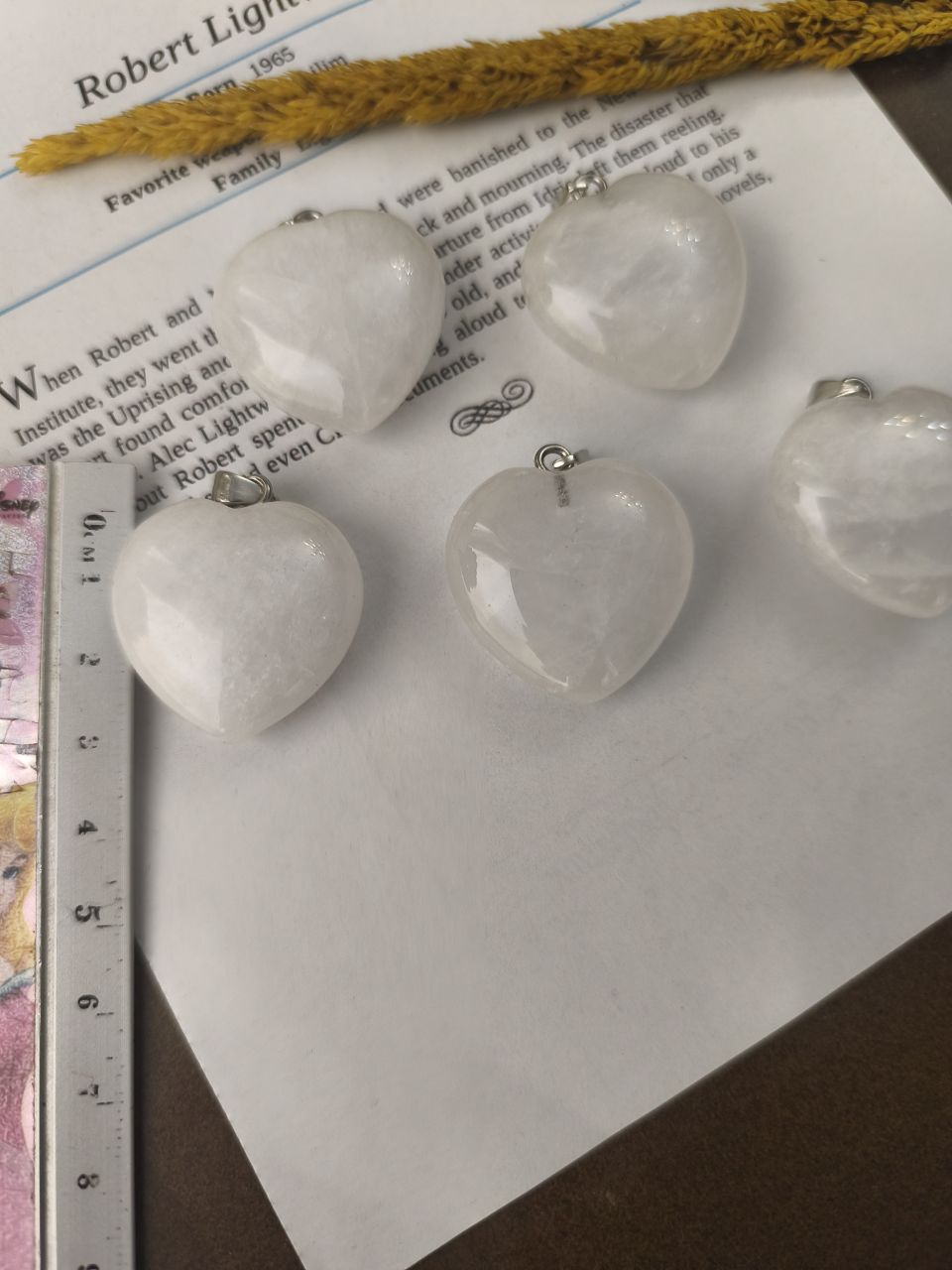 گردنبند سنگ کریستال کوارتز شفاف قلبی تپل به همراه زنجیر استیل