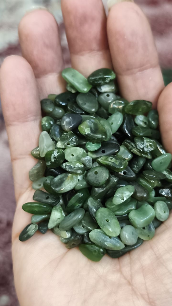 مهره سنگ یشم چیپسی اصل معدنی سوراخ دار