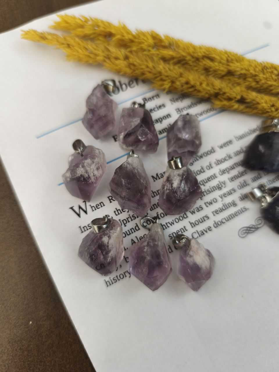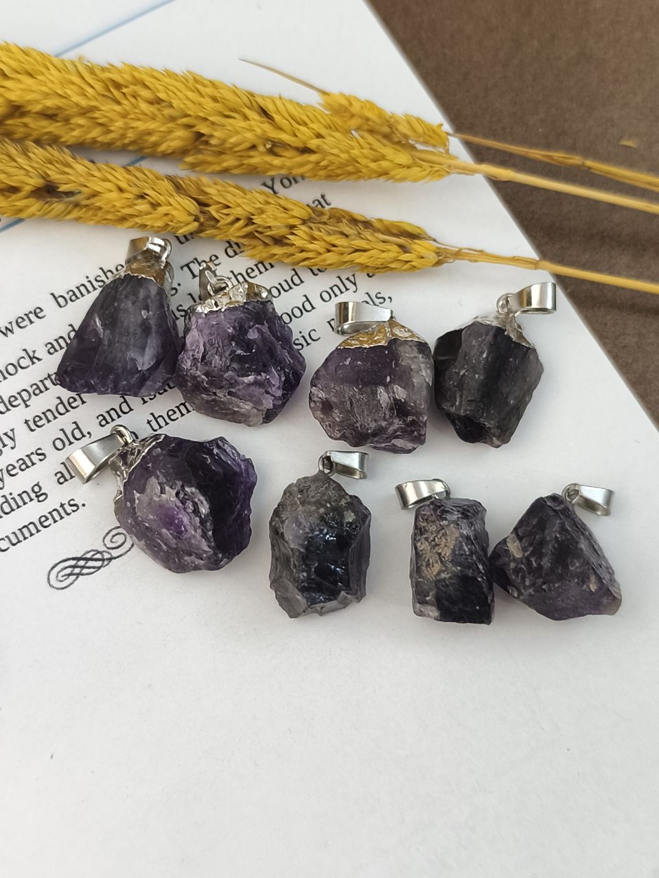 گردنبند سنگ آمیتیست آفریقا راف آویز آمیتیست سنگ اصل درجه یک به همراه زنجیر استیل تراش نخورده آویز مدال