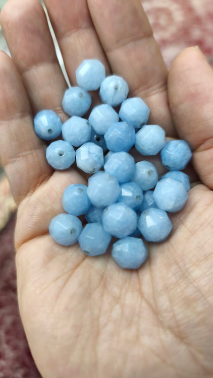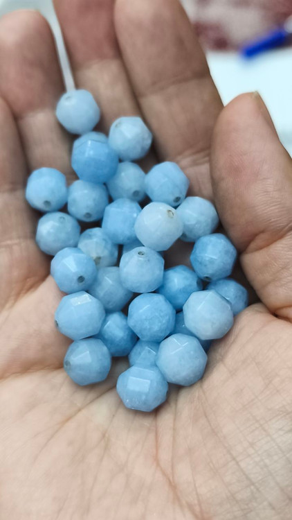 مهره سنگ جید آبی آسمانی تراش ۲۰۲۱ انرزی ۱۰میل اصل معدنی سوراخ دار
