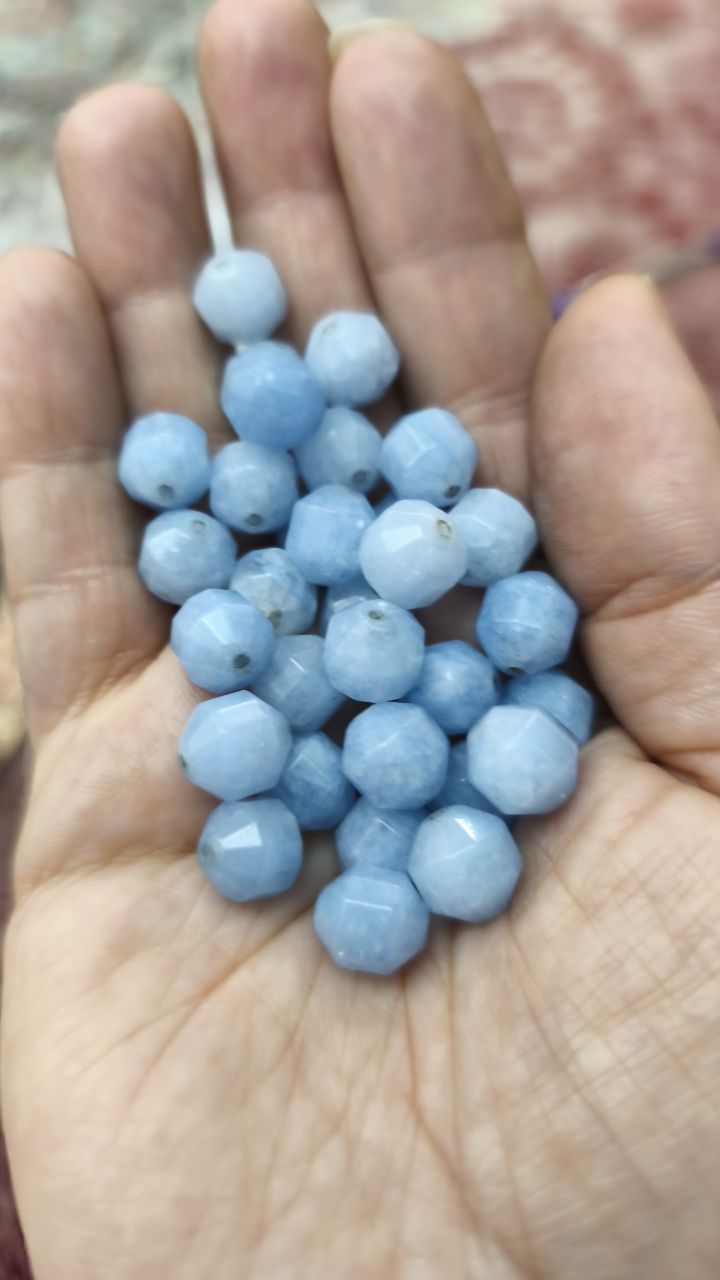 مهره سنگ جید آبی آسمانی تراش ۲۰۲۱ انرزی ۱۰میل اصل معدنی سوراخ دار