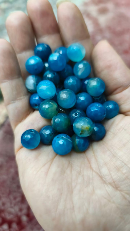 مهره سنگ عقیق آبی ماداگاسکار راش جواهری ۱۰میل اصل معدنی سوراخ دار