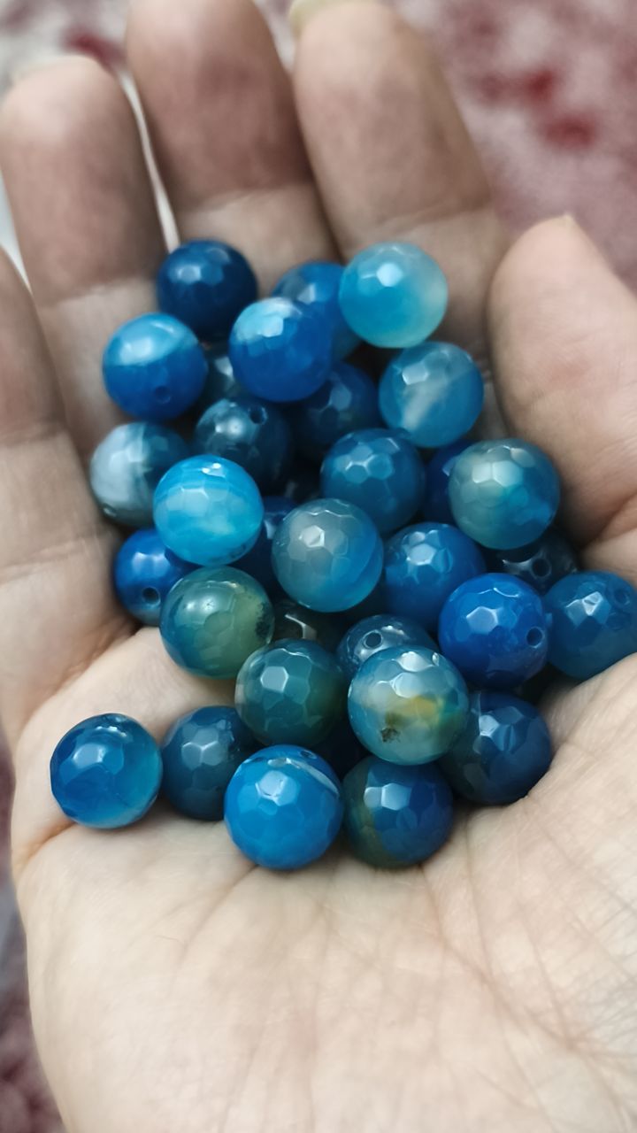 مهره سنگ عقیق آبی ماداگاسکار راش جواهری ۱۰میل اصل معدنی سوراخ دار