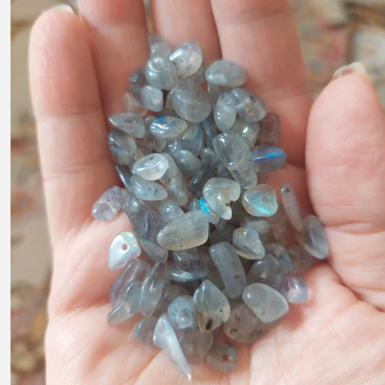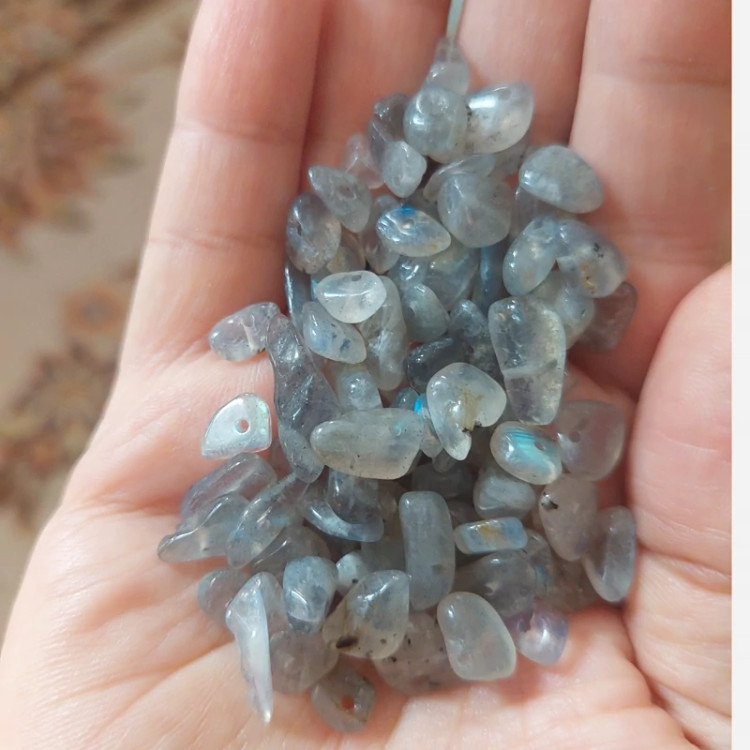 مهره سنگ لابرادوریت چیپسی سوراخ دار دفرمه راف تراش نخورده با تلالوئی بی نظیر