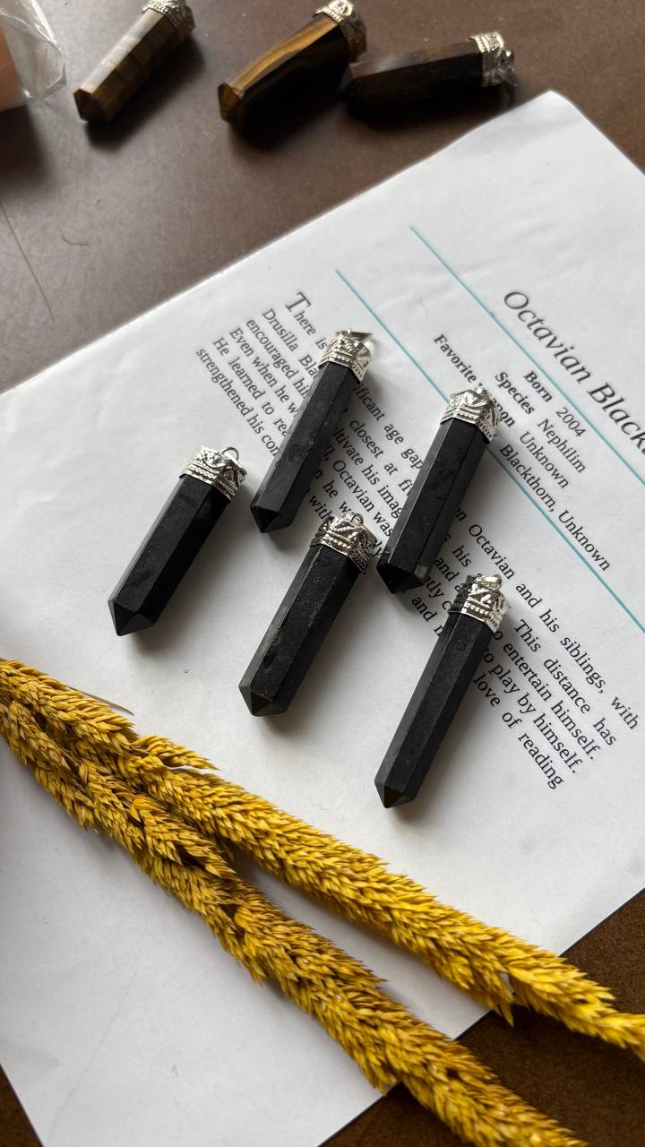 گردنبند سنگ تورمالین سیاه هند منشوری تراش دست با زنجیر ویتالی یا بند چرم