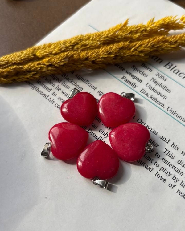 گردنبند جید قرمز قلبی ۲۰میل اصل معدنی با زنجیر استیل