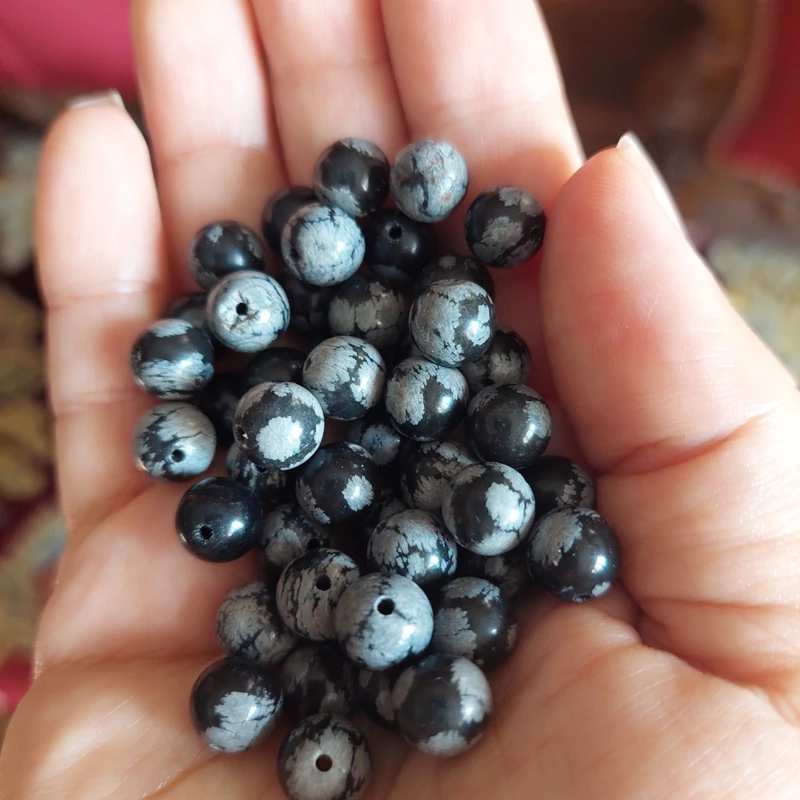 مهره آبسیدین لکه برفی سوراخ دار سایز8 سنگ اصل طبیعی درجه یک