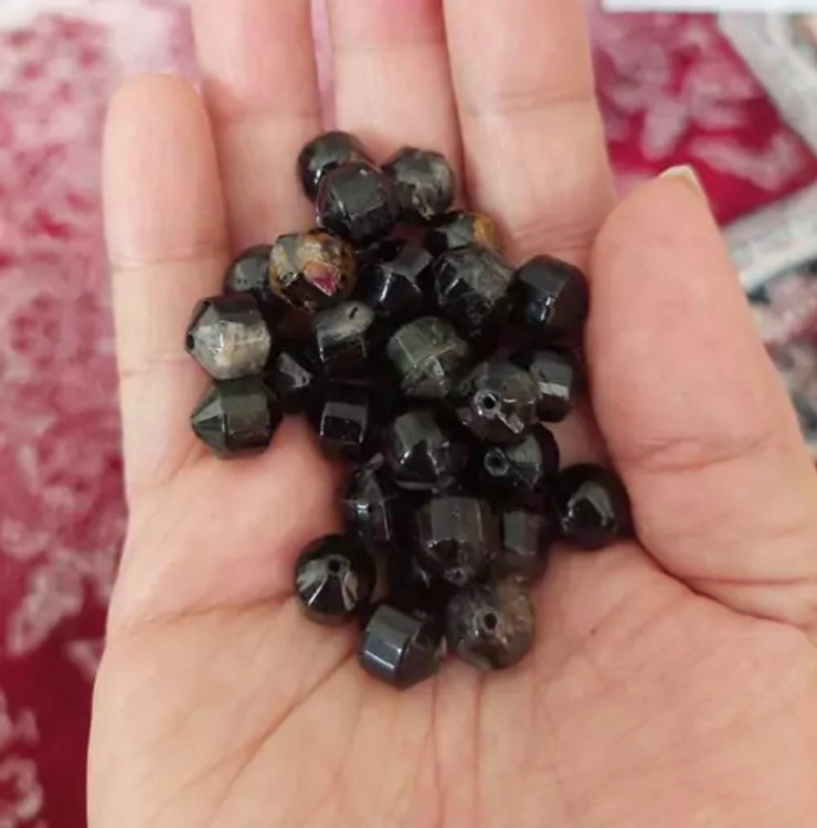 مهره سنگ تورمالین سیاه تراش ۲۰۲۱انرژی اصل معدنی سوراخ دار