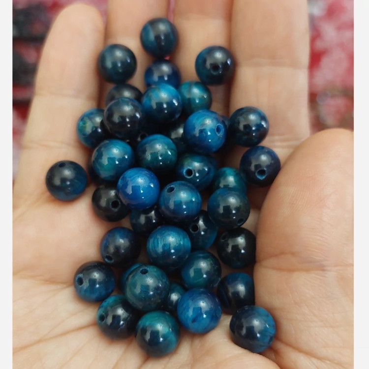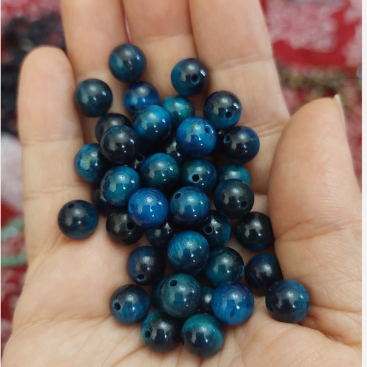 مهره سنگ چشم ببر سورمه ای وارداتی سایز 8 سنگ اصل سوراخ دار