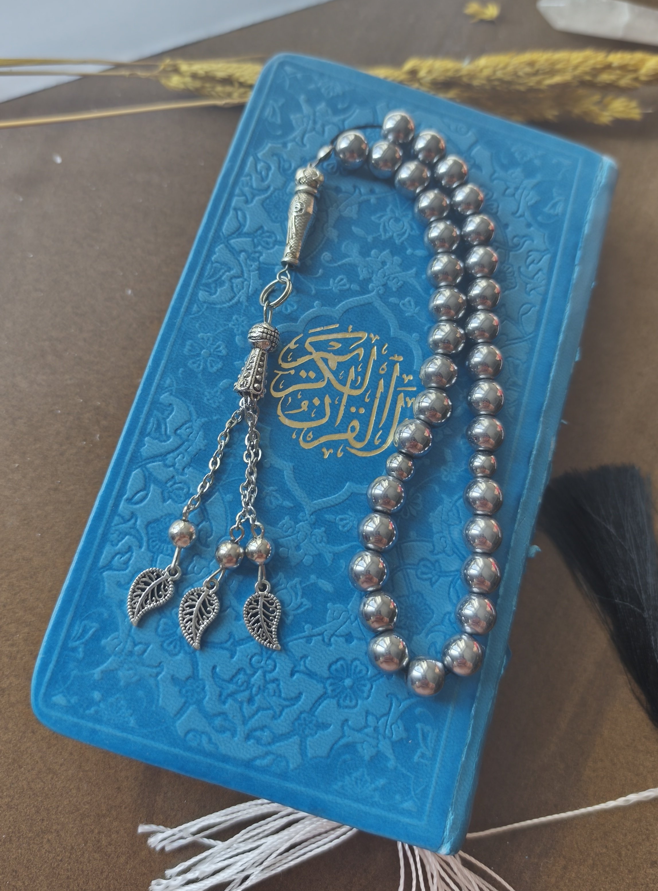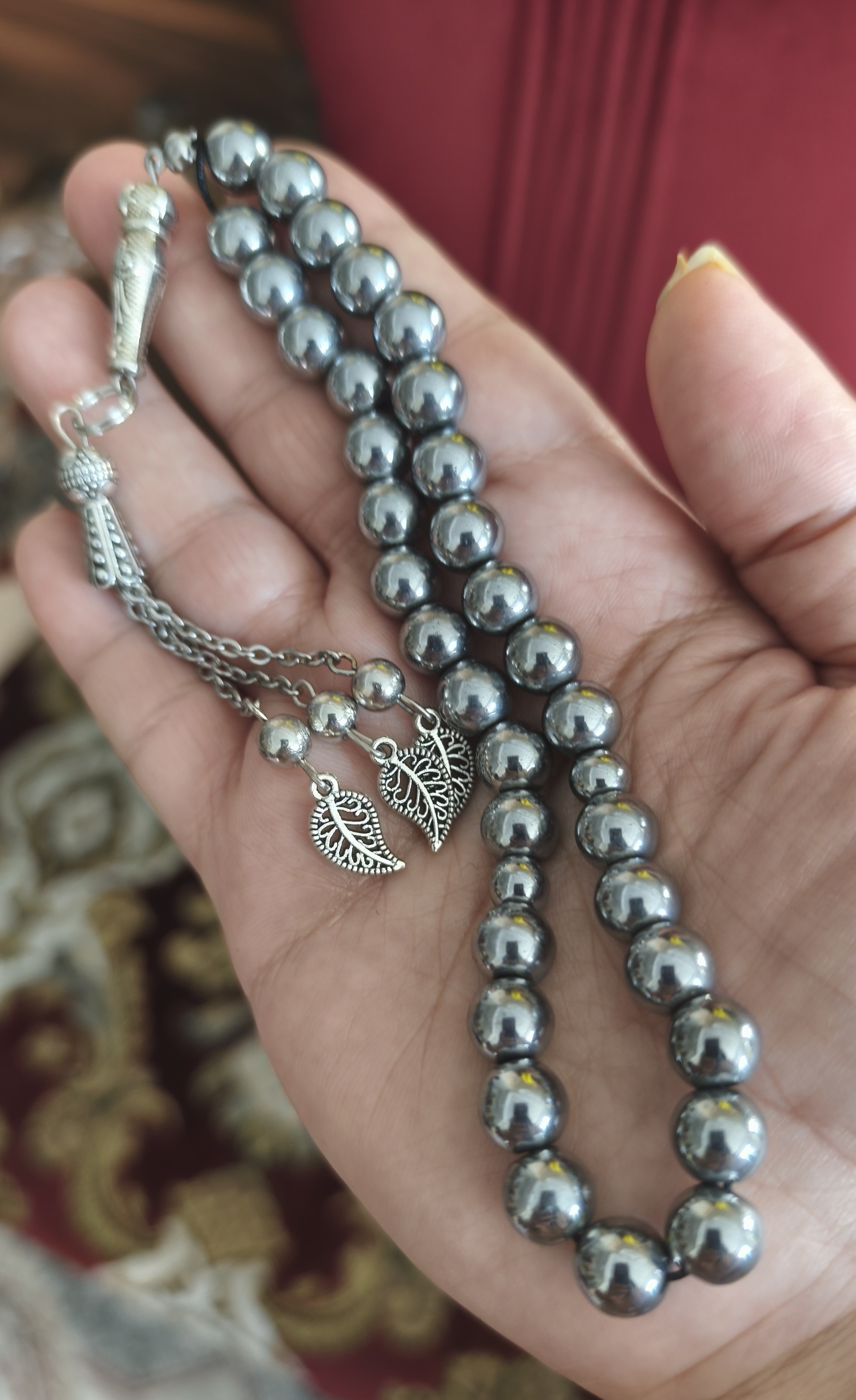 تسبیح حدید ۳۳دانه نقره ای سایز ۸میل گرد اصل